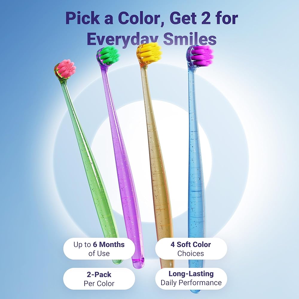 Superior and Efficient Cleaning: The 0.65'' large brush head paired with dual-layer bristles covers more tooth surface per brush, cutting down on daily cleaning time while lifting surface plaque and food debris. Ultra-thin bristle tips slip into hard-to-reach gaps between teeth and along gum lines, targeting hidden buildup that leads to bad breath and dental issues.