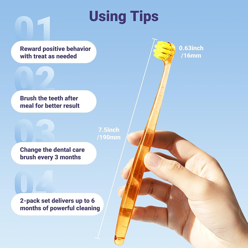 Dog Toothbrushes for Medium and Large Dogs, 2pcs, Ultra Soft Bristle, Long Durable Handle, Pet Tooth Brush and Dental Care Kit, Super Thin Bristle Gentle on Gum for Sensitive Pets, Amber
