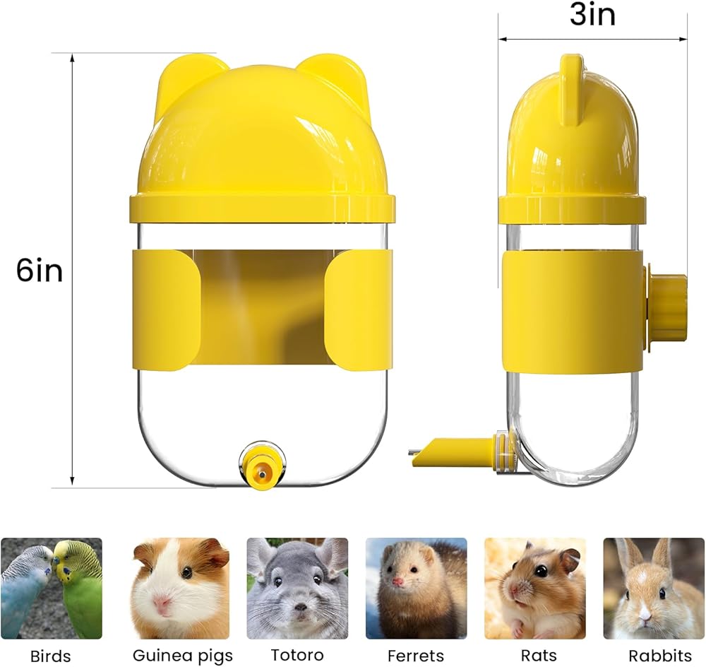 11 Fl Oz No Mess Hanging Water Dispenser,Leak-Proof Automatic Bird Water Feeder,Small Animal Water Bottle for Guinea Pigs,Chinchillas,Ferrets,Parrots,Squirrels,Rats,Bunnies (Yellow)