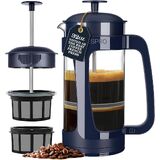 GRIT-FREE COFFEE WITH PATENTED DOUBLE MICROFILTER: Enjoy a smooth, sludge-free cup every time. Our french press coffee maker filters twice for clean flavor. Available in 18oz & 32oz sizes—press once, filter twice, and savor pure, bold coffee.