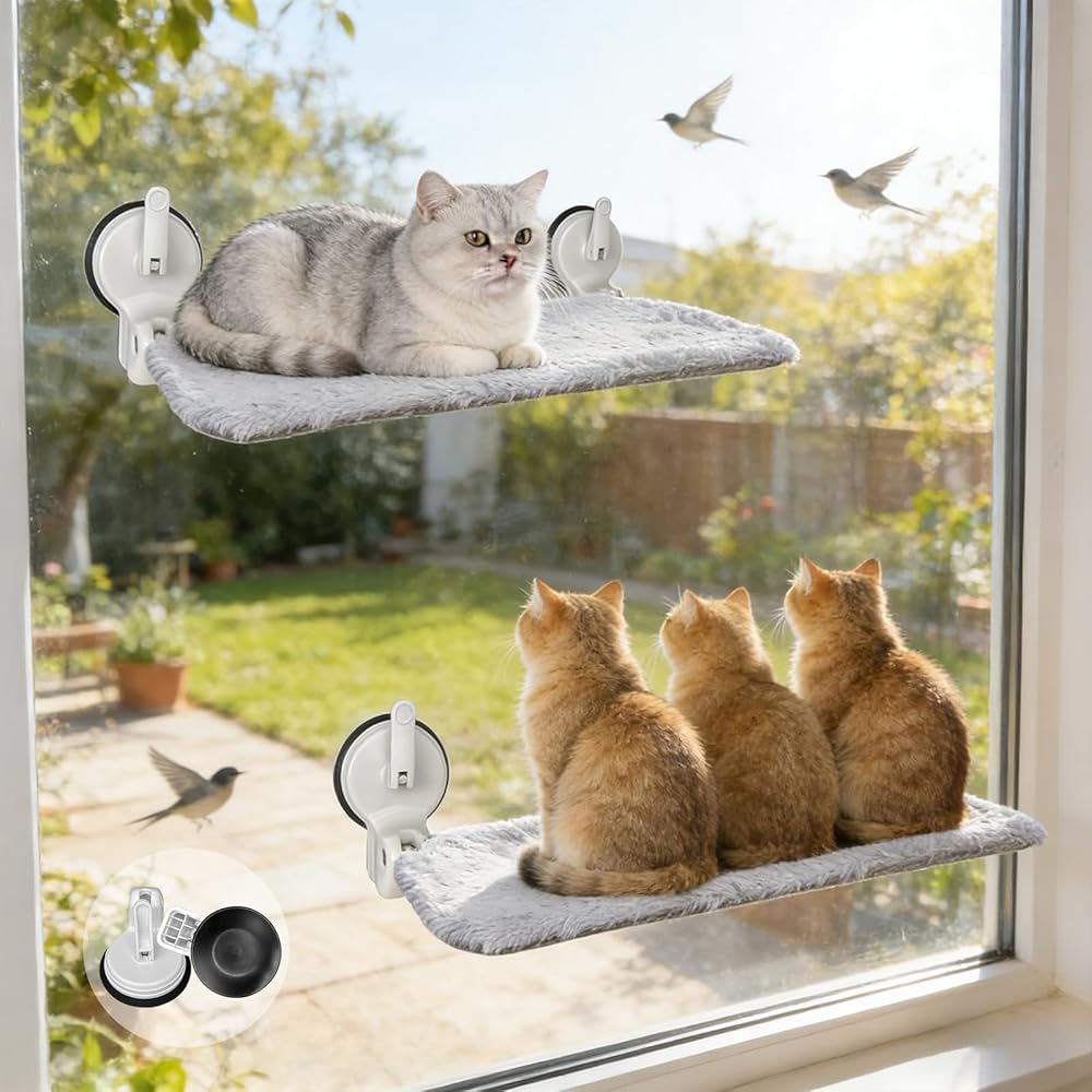 Built for Large Cats & Multi-Cat Homes: Reinforced frame supports up to 50 lbs, perfect for Maine Coons, Savannahs, or multiple cats enjoying sunlit windows together.