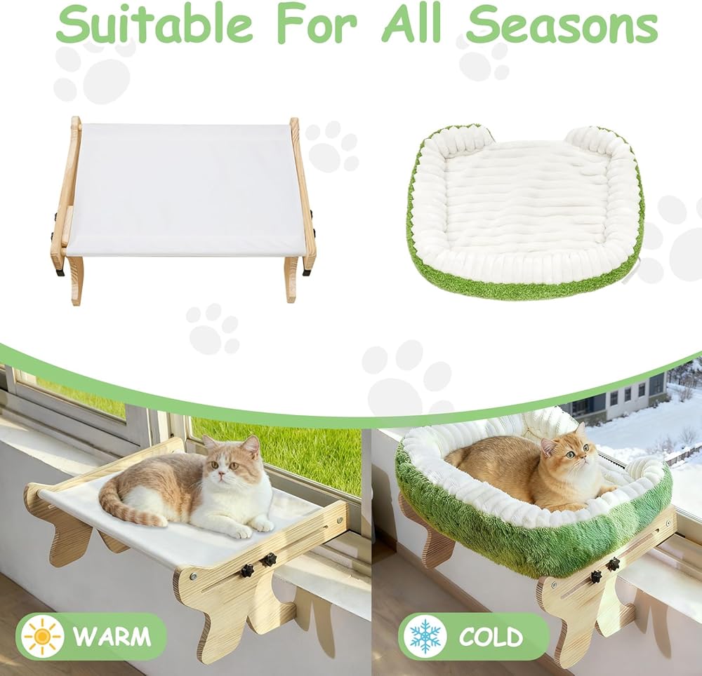 ثنائي الأغراض: يمكن تعليق مجثم النافذة هذا أو تثبيته على حافة نافذة الشقق أو المنازل الصغيرة، مما يوفر مساحة مشتركة أو خاصة للأسر الفردية أو متعددة القطط. يمكن أيضًا تعليقها أو تثبيتها بجانب السرير لترافقك أثناء الراحة والنوم. عند إزالته من النافذة، يمكن أيضًا وضعه على الأرض، حيث يعمل كسرير للقطط، أو بيت للقطط، أو شقة للقطط، أو أرجوحة للقطط، أو أريكة للقطط، أو سرير للقطط.