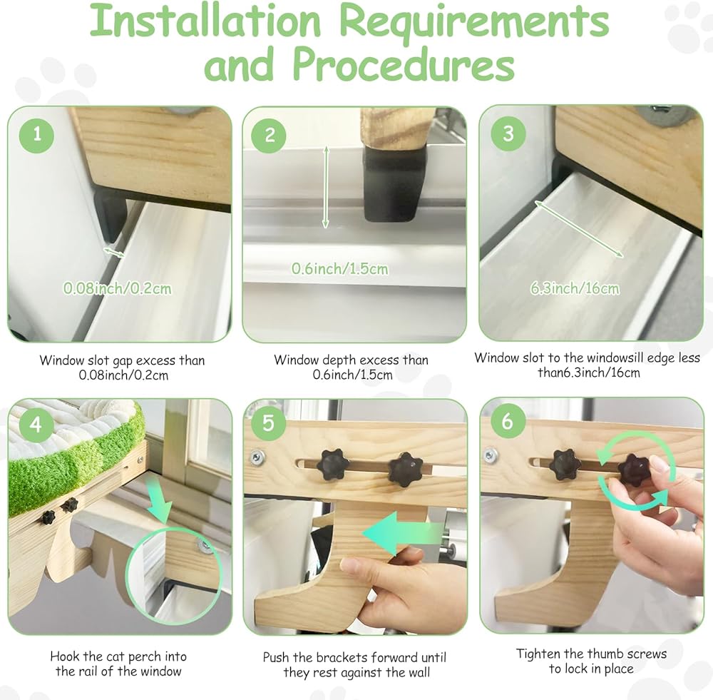 قدرة تحمل ثابتة: مناسبة للقطط من جميع الأعمار والأحجام، سواء كانت القطط الصغيرة أو البالغين أو كبار السن. تسمح سعة الحمل القصوى بتعديل مسافة الأرجل لاستيعاب أحجام النوافذ المختلفة. يتكون الإطار الخشبي القوي من أنابيب فولاذية مطلية مقاومة للصدأ، مما يعزز قدرة تحمل المجثم ويمكنه تحمل تأثير النشاط القوي من القطط.