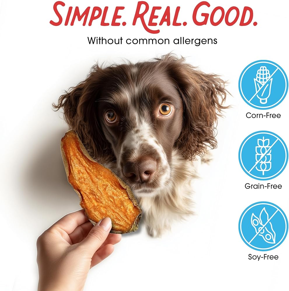 Give your furry friend the best with our human grade Sweet Potato Dog Treats—a low-fat and grain-free dog treat made with 100% USA grown sliced sweet potato. These dog jerky treats are perfect for all breeds and sizes, whether you're training a new puppy or rewarding your loyal companion.