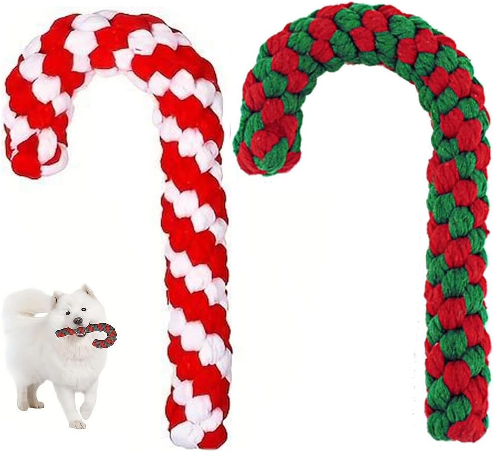 You will get: package include 2 pieces Christmas dog rope toys in different colors suitable for small medium sized dogs and other;adding a warm and sweet atmosphere to your Christmas party or daily life.