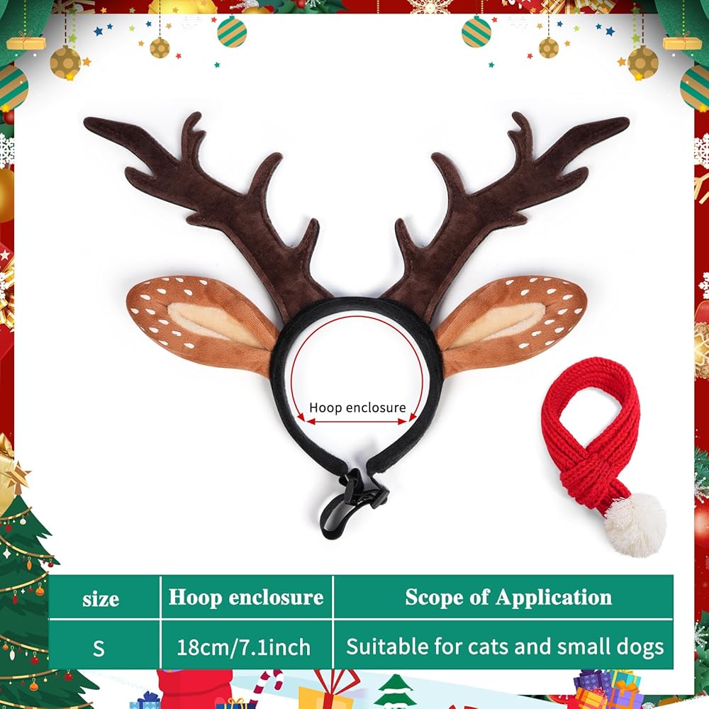 Premium Materials: The set includes one Christmas pet scarf and one Christmas reindeer antler headband with ears; a delightful choice to effortlessly incorporate your pet into festive photos. This Christmas costume set primarily uses high-quality cotton fabric, offering a comfortable and soft feel without pressing on the ears.