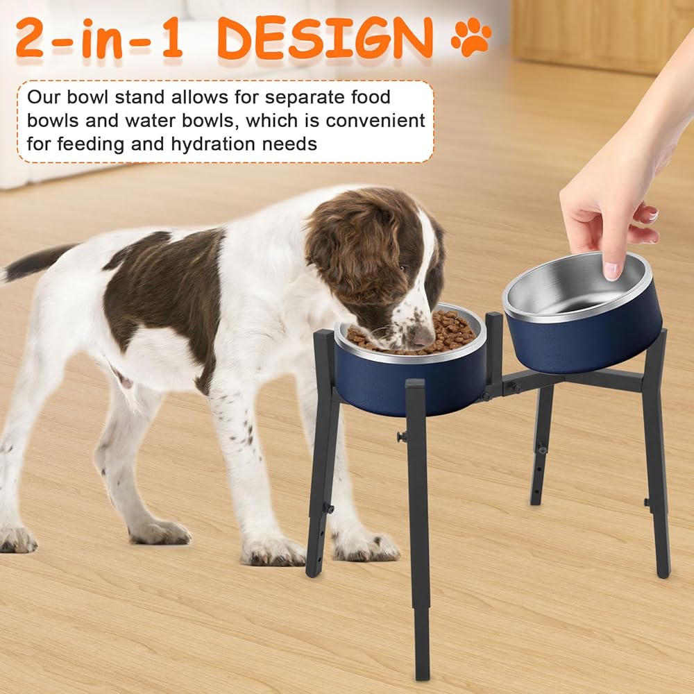 Dog Bowl Stand Elevated, Raised Pet Food & Water Riser for 6.7-10.6" Wide Bowls, Metal Dog Bowl Holder for Small Medium Large Dogs, 2-in-1 Design, Adjusts to 9.8", 11.8", 13.4" Tall(Stand Only)