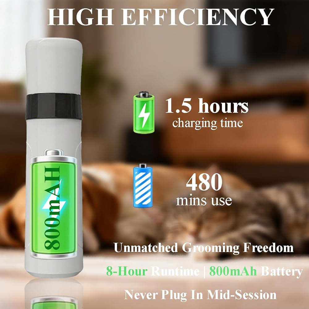 Unmatched Cordless Freedom: Powered by a robust 800mAh battery, a quick 1.5-hour charge delivers up to 8 hours of uninterrupted grooming. No cords, no hassle—just complete convenience.