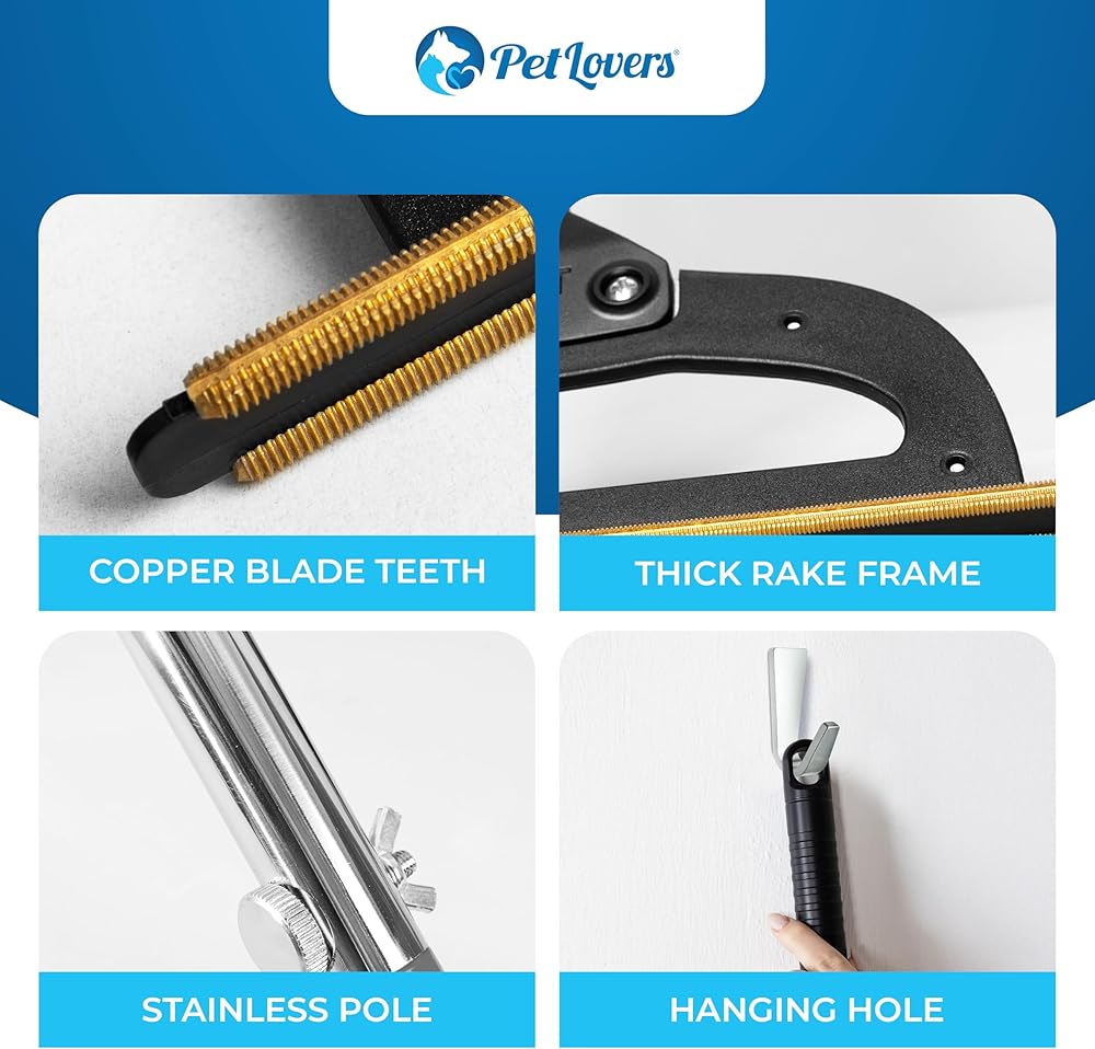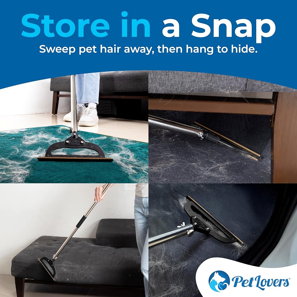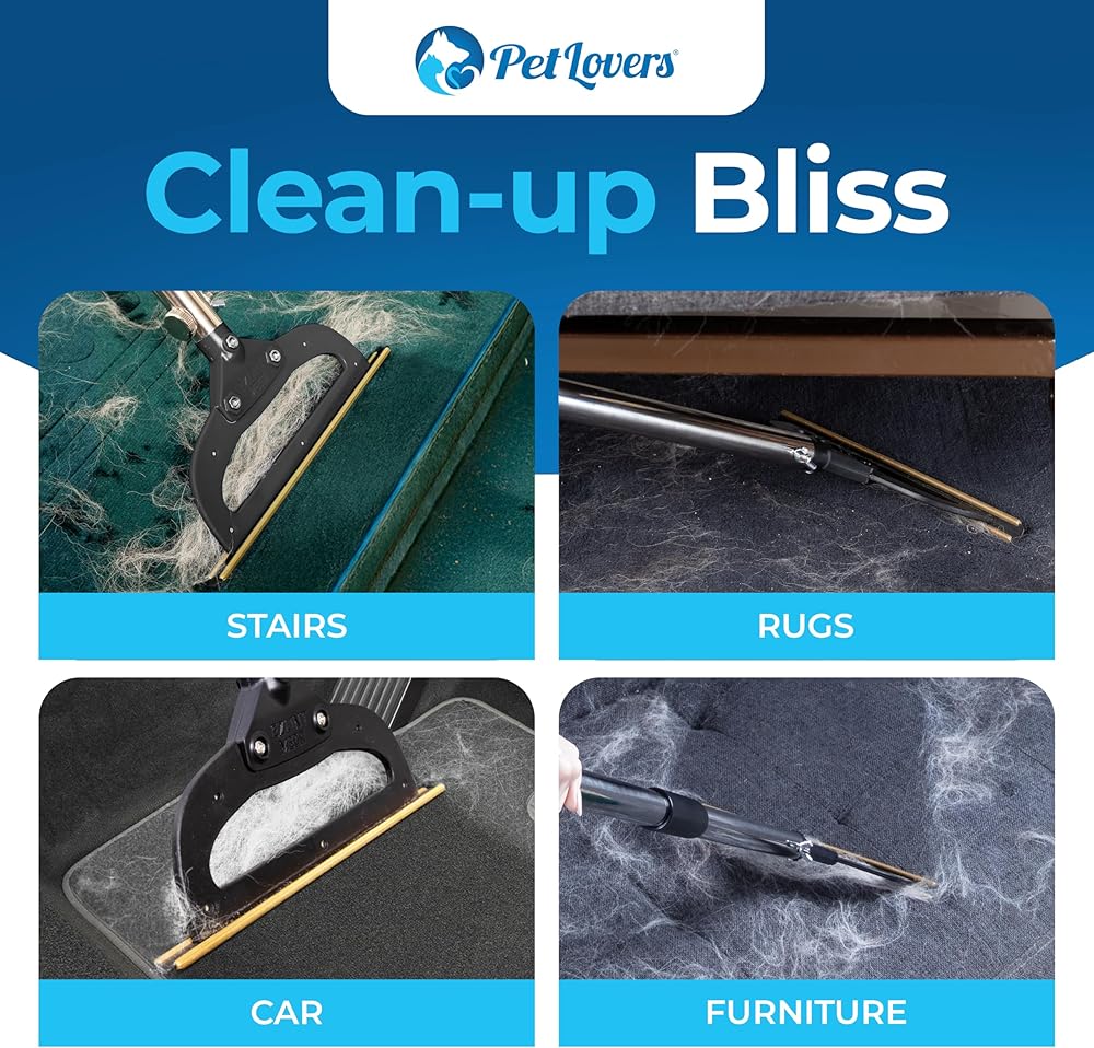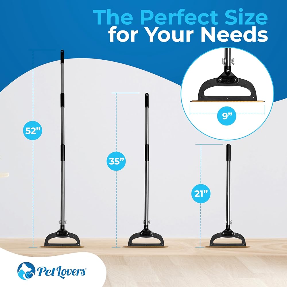 PetLovers EzLint Mega 52" Carpet Rake & Pet Hair Removal Tool – Dog & Cat Hair Remover Broom with Adjustable Handle & Extra Wide Head for Carpets, Rugs & Stairs (Black)