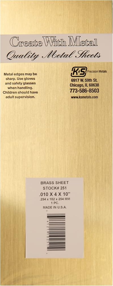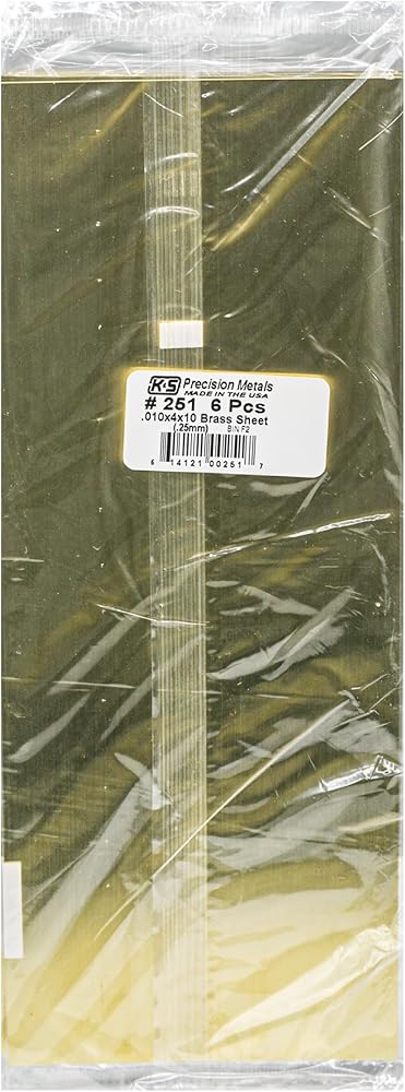K&S Precision Metals Brass Sheet 251 – 0.010" Thick x 4" Wide x 10" Long – DIY Crafts, Metalworking, Modeling, Jewelry, Made in USA, 6 Sheets