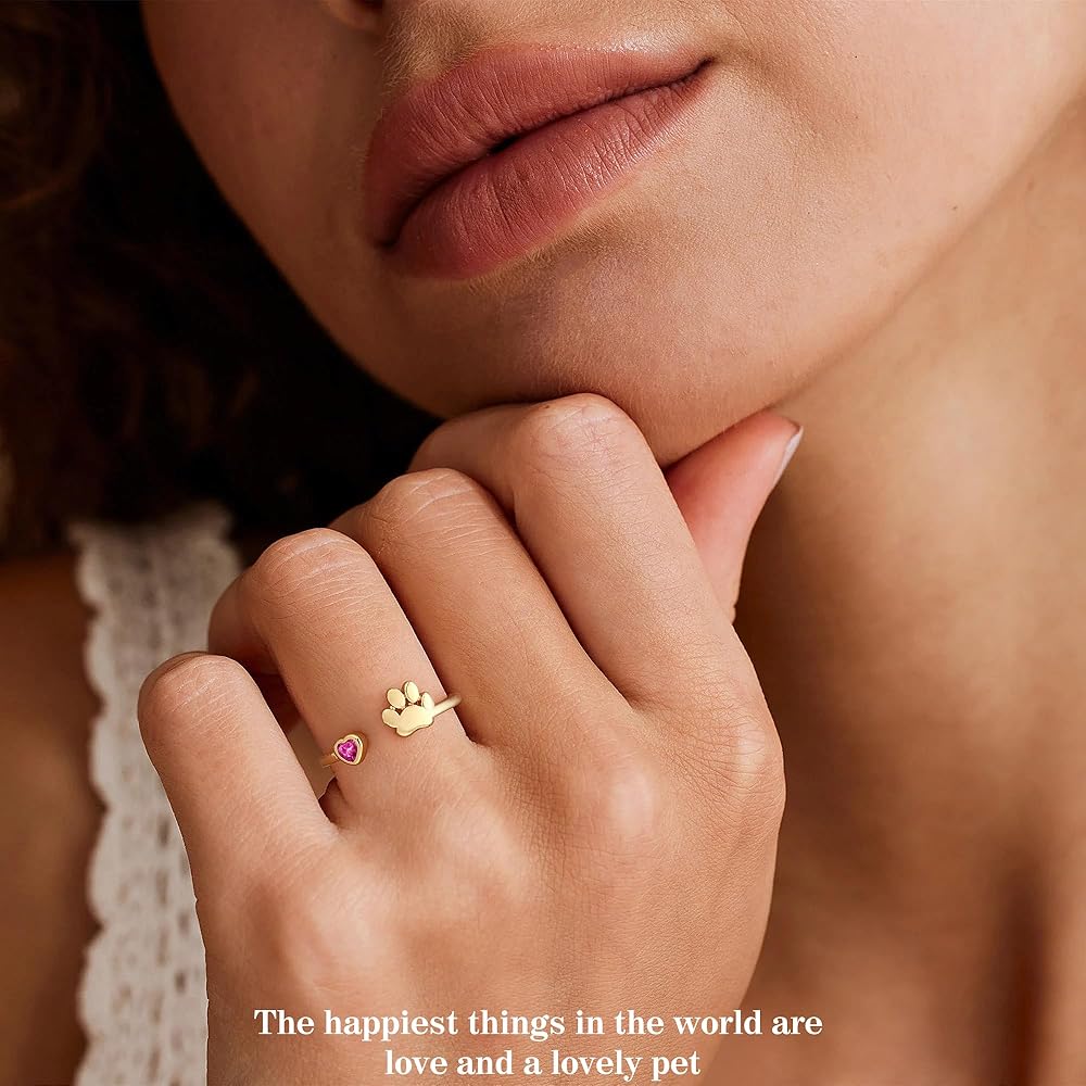 Memorial Jewelry Gift for Pet Lovers Size: Dog memorial rings is adjustable. So you do not to worry about the size of dog ring with heart. Dainty and comfortable to wear. So can regard may rings with pet paw as October birthday gifts