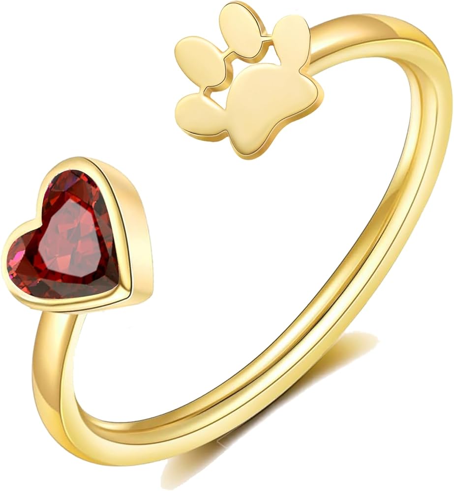 Gold Rings for Women with Paw and Heart: Dog memorial gifts for women do have good material, you give dog paw birthstone rings with heart for your sister girlfriend daughter granddaughter as birthday gifts/Anniversary Gifts, she must be very like it