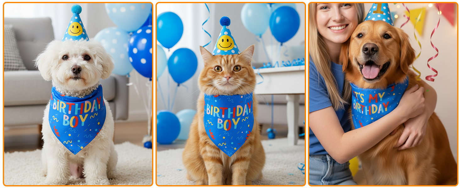 Multi-Size Dog Fit: The birthday boy dog bandana is suitable for puppy, medium, large and xlarge dogs, with an adjustable tie design to fit different neck sizes comfortably;
