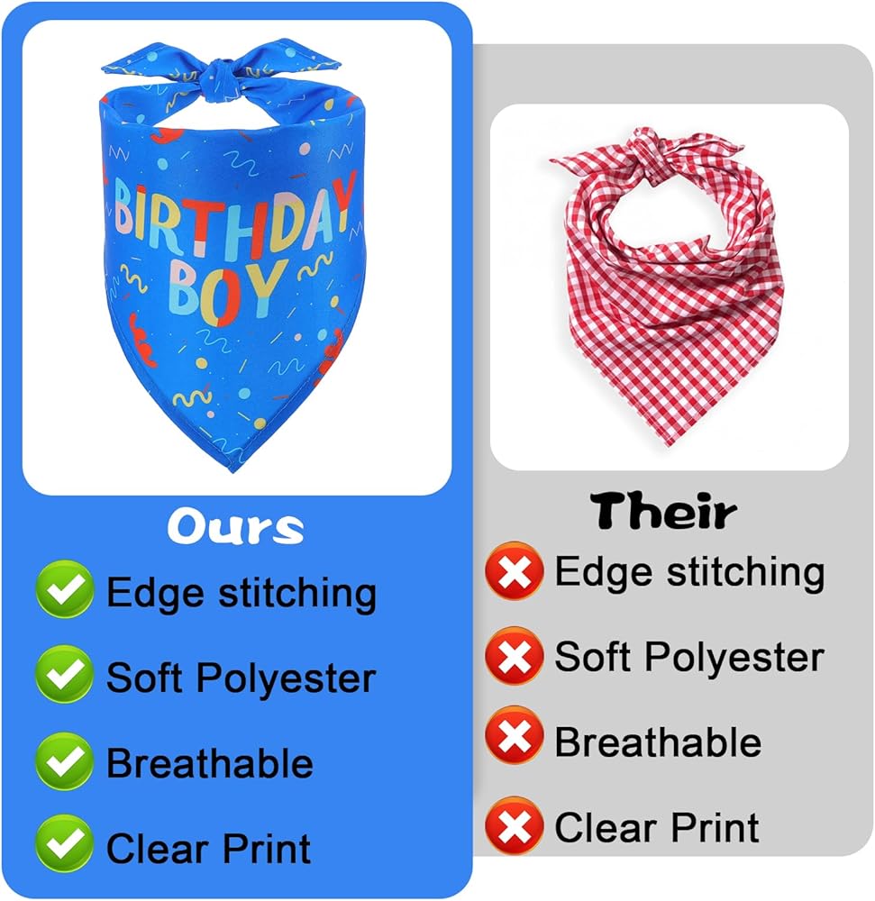 Printed Triangle Style: The dog birthday bandana boy has a triangle shape and clear prints, making your dog look cute and eye-catching at birthday parties or photo shoots;