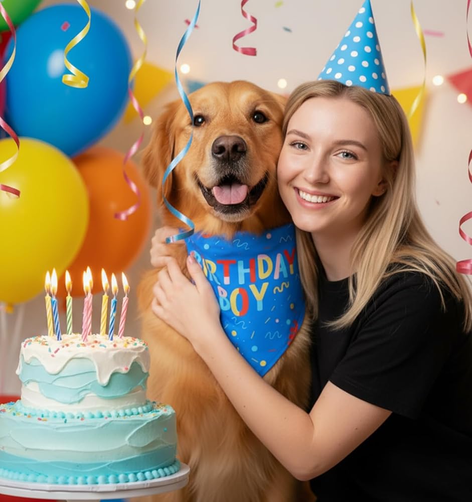 1PCS Birthday Themed: This set includes 1PCS birthday dog bandana, printed with birthday-related elements that add a festive touch to your dog's birthday celebration;