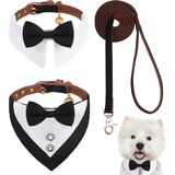 BINGPET Dog Tuxedo Suit Wedding Bandana Collar with Bow Tie,Adjustable Formal Dog Tux with Leash,Pet Birthday Wedding Tux Outfit Collar and Leash Set for Small Medium Dogs