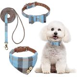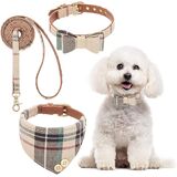 PREMIUM MATERIAL & CRAFTSMANSHIP: Crafted from soft, skin-friendly PU leather and delicate twill fabric, the dog collar and leash set combines comfort and durability with timeless style. The bandana is lightweight and easy to remove for washing, making it both elegant and practical for repeated use
