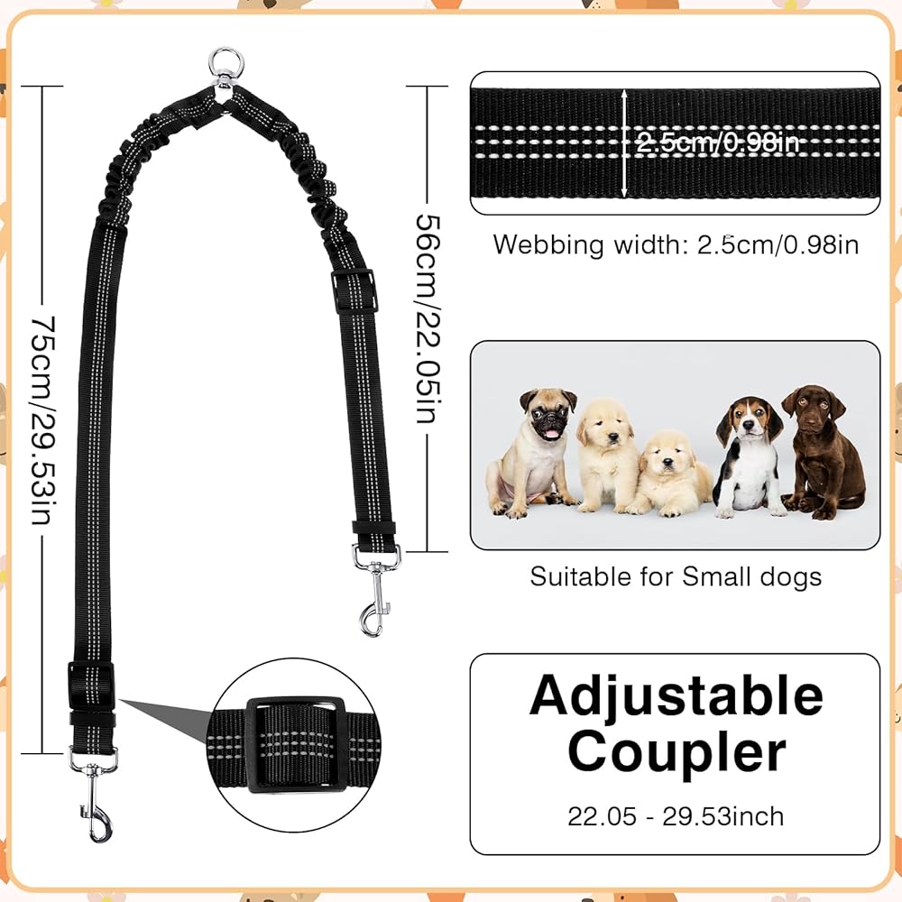Adjustable Length: Customize the length of the tangle-free dog leash for two dogs. With lengths ranging from 22.05 inches to 29.53 inches, the dog leash offers flexibility and comfort, and the two dog leash fits dogs of all sizes