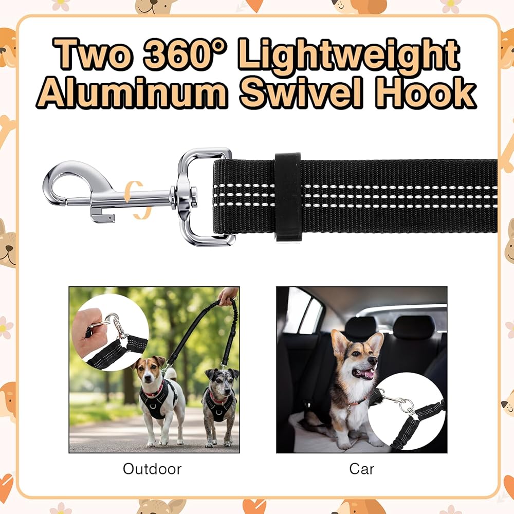 Tangle-Free Design: The double dog leash for two dogs features a 360° swivel mechanism, ensuring a tangle-free experience. Perfect for energetic puppies and large breeds, the double dog leash's no-tangle design makes walks smooth and worry-free