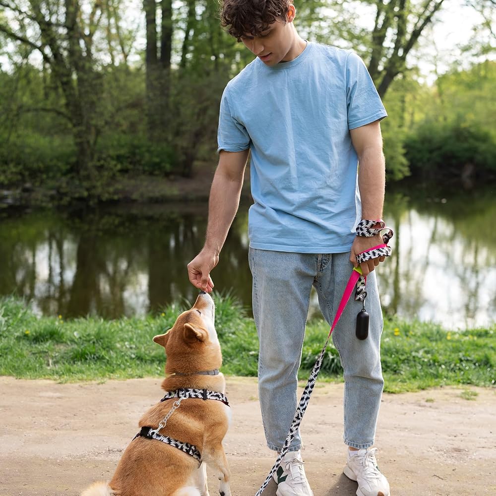 【Multiple Pet Safety Uses】This dog leash safety clip is ideal for various scenarios like daily dog walking, park playing, outdoor hiking, and family travel; the head collar provides a stable connection for the dog collar, helping to keep your pet safe during activities.