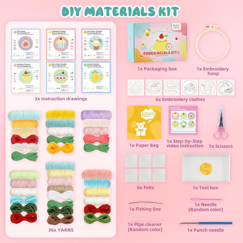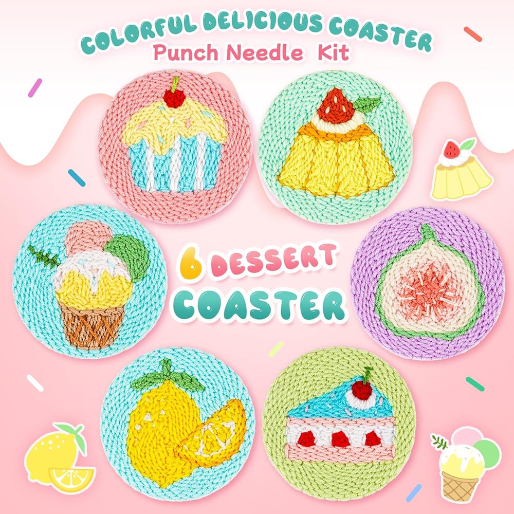 Punch Needle kit-6,Embroidery kit for Beginners,Punch Needle Kits Adults Beginner,Needles, Curved Scissors, a Tool Storage Box, Yarn, Easy-to-Follow Instructions, and Tutorial Videos-Fruit Dessert