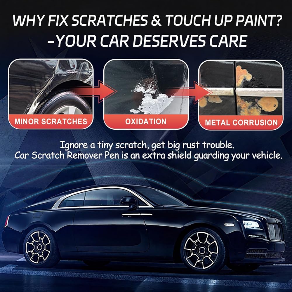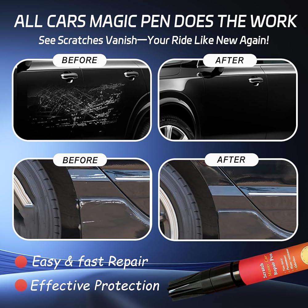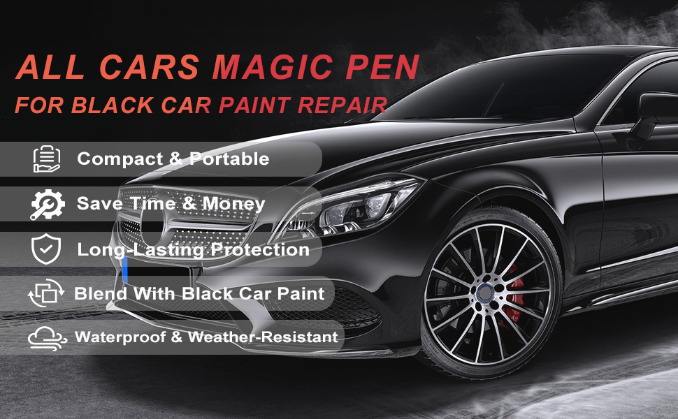 BLACK CAR SCRATCH REMOVER PEN: Designed for black vehicles, this all cars magic pen matches your black car's glossy finish seamlessly, delivering salon-worthy results. Effortlessly conceal minor scratches, scuffs, and unsightly marks in just minutes—restore factory-fresh shine that makes your black car stand out