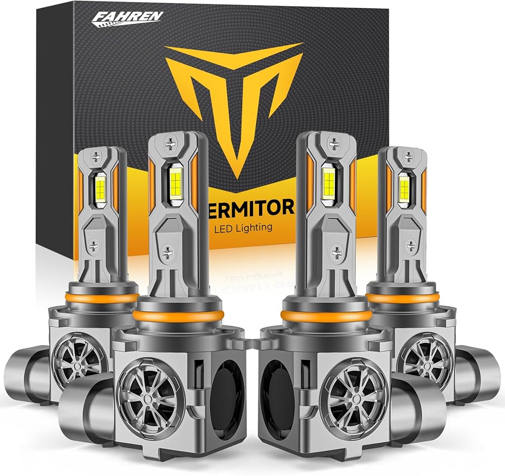 Termitor 9005/HB3 9006/HB4 Light Bulbs, 150,000LM Brightness, 85000+ Hours Long Service Life, 6500K Cool White, Real 1:1 Halogen Size Fog Lights, 3 Mins Plug N Play, Pack of 4