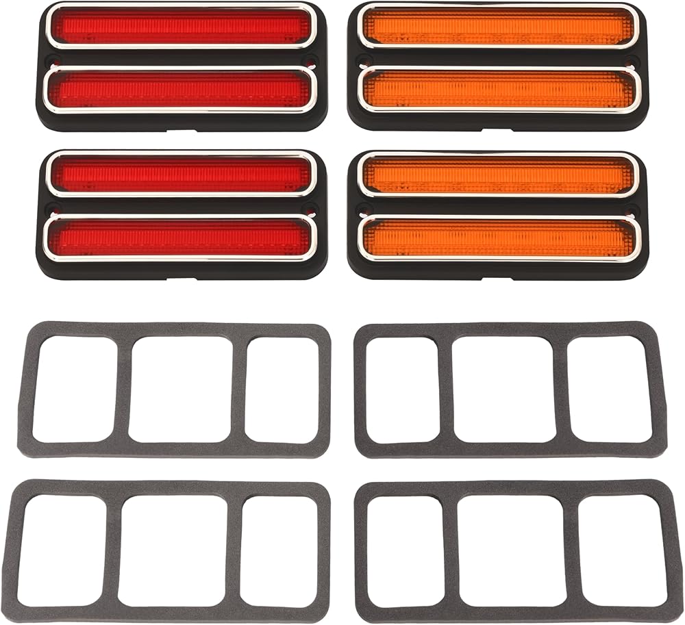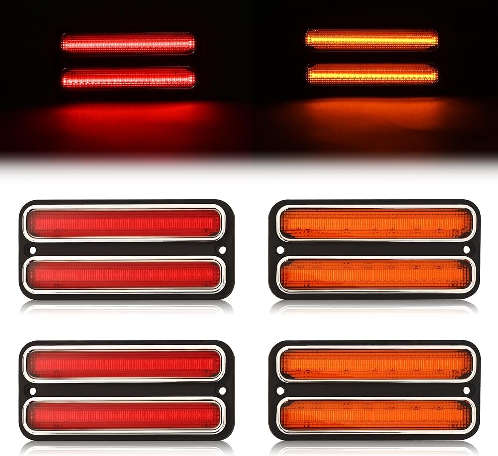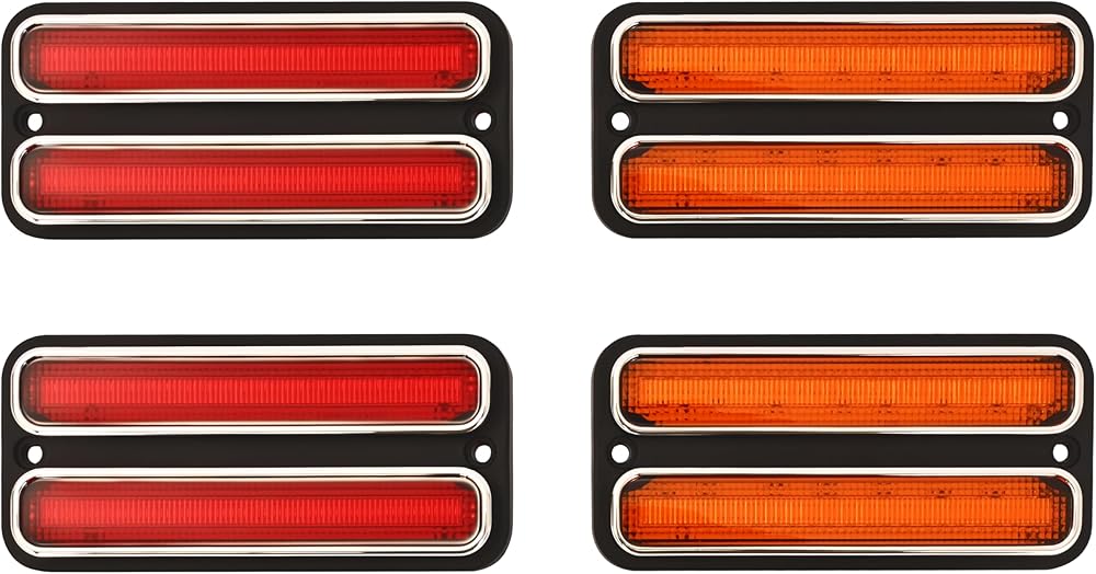 Fitment: Compatible with 1969-1972 Chevrolet Blazer; Compatible with 1968-1972 Chevrolet C10 Pickup & C10 Suburban & C20 Pickup & C20 Suburban & G10 Van & G20 Van & K10 Pickup & K10 Suburban; Compatible with 1968-1972 GMC C15/C1500 Pickup & GMC C15/C1500 Suburban & GMC K15/K1500 Pickup & GMC K15/K1500 Suburban; Compatible with 1967 Chevrolet C10 Panel Appearance: Color: Amber and red lenses. Lighting technology: LED. Location: Front and rear. This product is made of automotive-grade plastic, capable of withstanding different harsh weather and environments, providing durable characteristics Function: Even in foggy weather, the LED side marker lights emit a bright and long-lasting beam, helping surrounding drivers notice your vehicle and reducing the likelihood of accidents. The different LED designs for the front and rear lenses also give your car a stylish and modern look Installation: Can be directly installed and replaced; simple and convenient, no modification or deformation required. Plug and play Package: Four Side Marker Lights (LED, Front Yellow Lens, Rear Red Lens). No installation accessories or instructions included