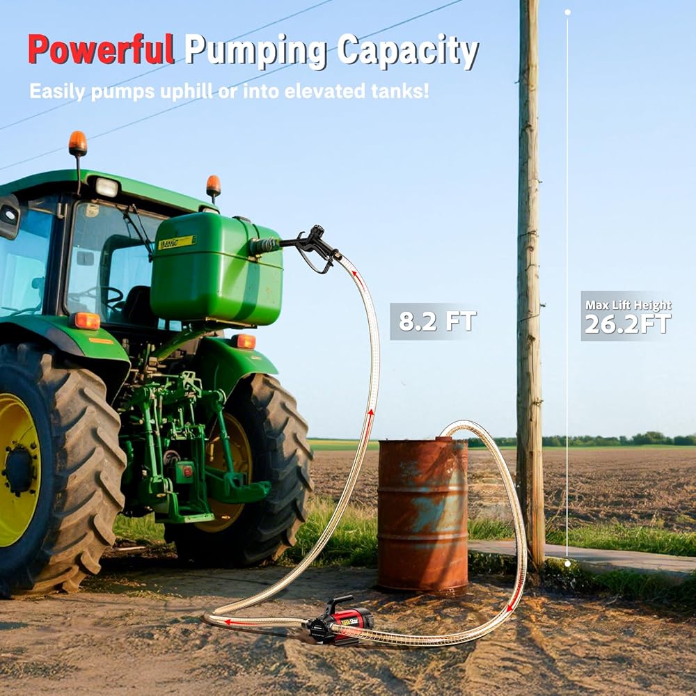 EASILY HANDLES REMOTE AND HIGH-POSITION FUELING: With a motor power of 160W, this diesel transfer pump can draw fuel from up to 9.8 feet away and pump it to a height of 26.2 feet. The diesel fuel pump easily handles remote fueling or high-position fuel tanks, solving various complex fueling issues
