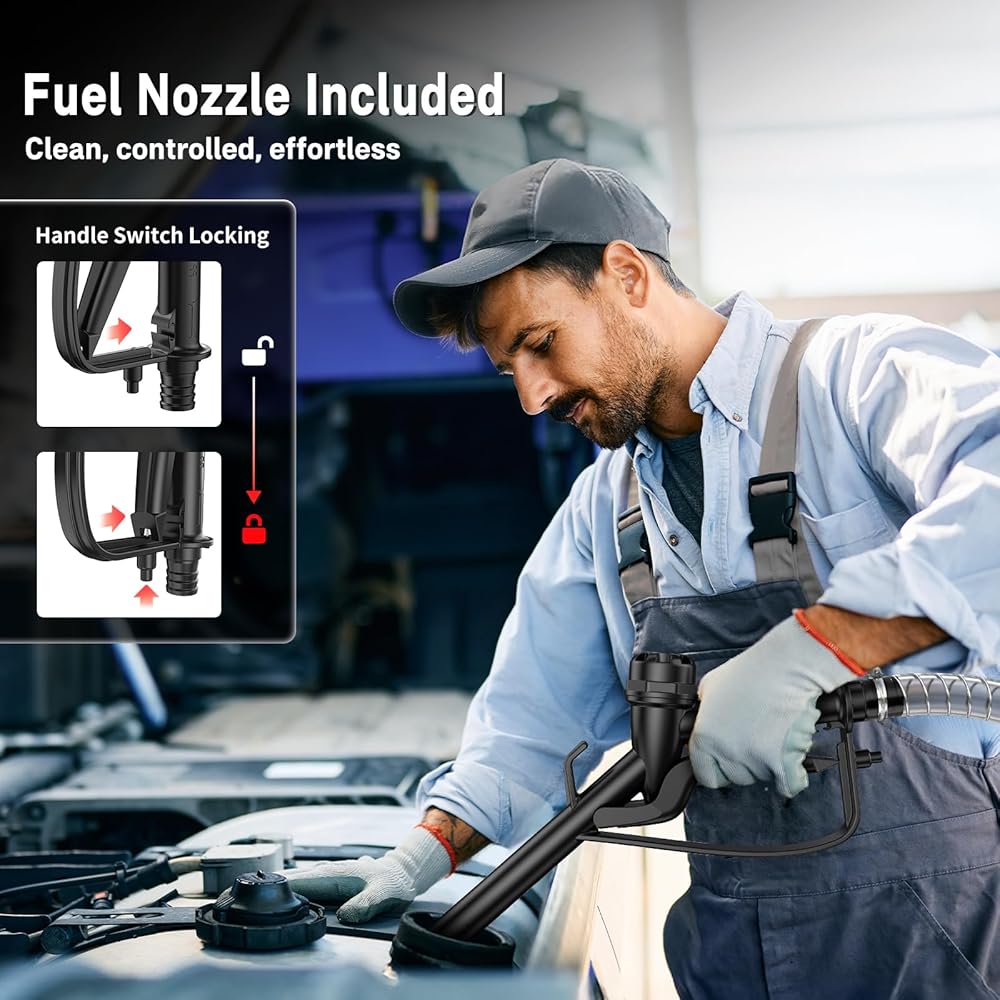 ONE-STOP FUELING SOLUTION: In addition to the electric transfer pump, the fuel pump kit includes one 47.2-inch and one 74.7-inch fuel hose, an adjustable fuel nozzle, and other accessories, ensuring you don't need additional equipment and can use it right out of the box