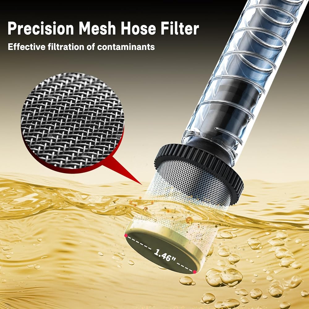 FULLY CONTROLLABLE AND SAFE OPERATION: The electric fuel pump is equipped with an adjustable fuel nozzle, allowing users to adjust the flow according to actual needs and easily switch between manual control or continuous pumping. The mesh filter effectively prevents large particles from entering the pump, ensuring clean fuel flow and preventing clogging