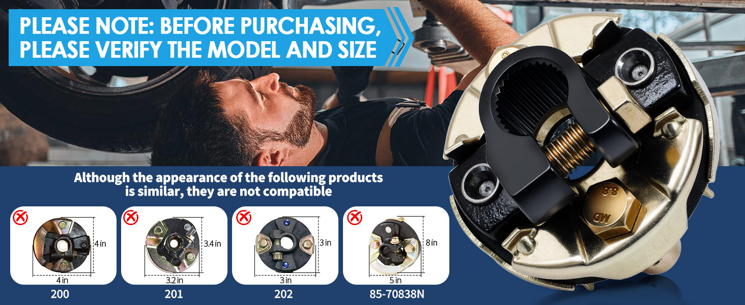 【Product Parameters】205 Steering coupling assembly suitable for 3/4" 26 spline input shaft, with an outer diameter of 2-3/4", size:2.77''*1.8'', models 200 201 202 have a similar appearance, but their sizes are different and not compatible. 205 Steering coupling exquisite design dimensions can be perfectly installed inside the replacement model car coupling. Please carefully check the product replacement model dimensions before purchasing