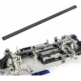 A carbon fiber center brace bar significantly enhances for ARRMA vehicle's performance by drastically increasing chassis rigidity for improved stability at high speeds and during cornering, while simultaneously reducing overall weight to optimize acceleration, handling, and jump control.