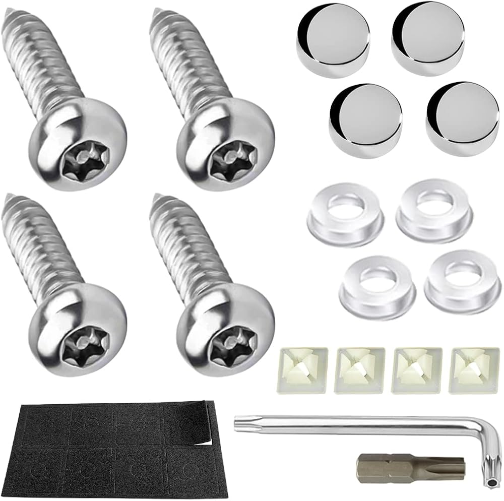 مجموعة براغي لوحة ترخيص من الفولاذ المقاوم للصدأ عالية الجودة: براغي لوحة أرقام السيارة مقاومة للصدأ مصنوعة من الفولاذ المقاوم للصدأ بنسبة 100% 304، عالي التحمل، قوي ومتين، مقاوم للتآكل، مقاوم للصدأ ومقاوم للطقس.