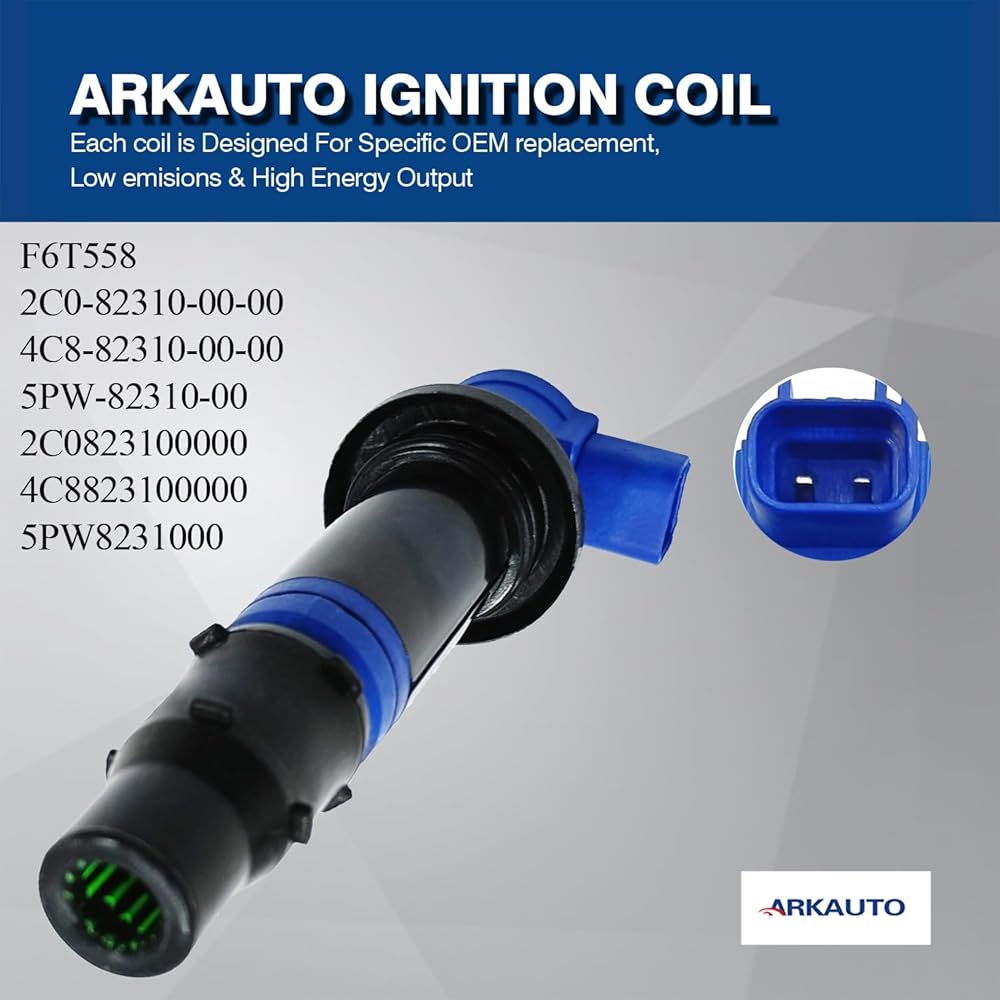 ADVANTAGE - ARKAUTO ignition coils are all designed according to original OE types, which can replace your original faulty coils perfectly and function like the original ones. This coil is replacement for OE: F6T558 2C0-82310-00-00 4C8-82310-00-00 5PW-82310-00 2C0823100000 4C8823100000 5PW8231000 buyers should compare the OE with your original cars' carefully before ordering to avoid buying a wrong part and cause an unnecessary lost.