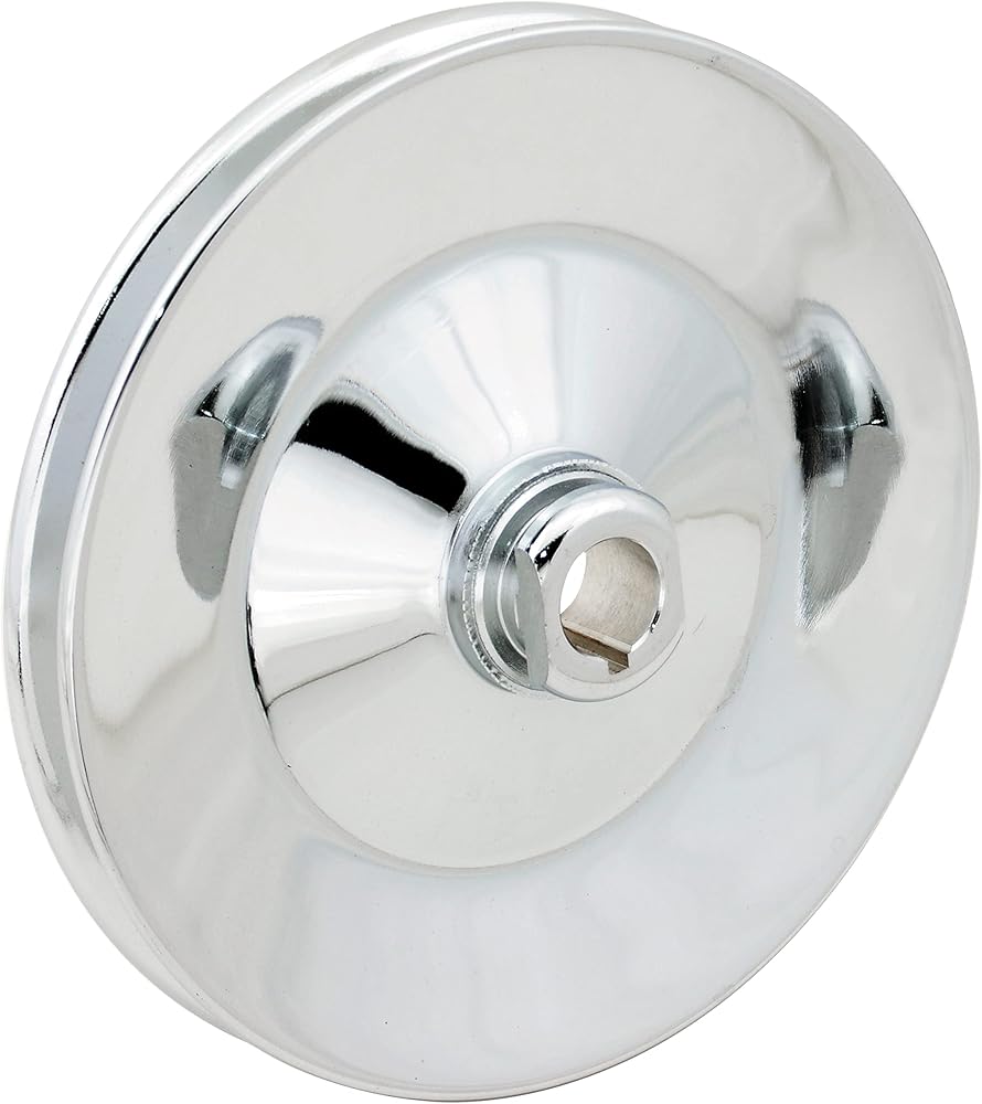 Fits 1967-1984 GM and Chevrolet Single Groove (with Keyway and 5/8 Inch Shaft).. Chrome plated steel. Single groove.