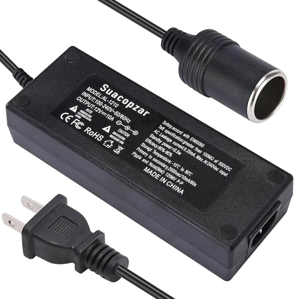 12V 10A Car Power Adapter Female Auto Cigarette Lighter Plug, AC 100-240V to DC 12V 10A 120W Power Supply Adapter AC to DC Converter Transformer for Car Powered Device