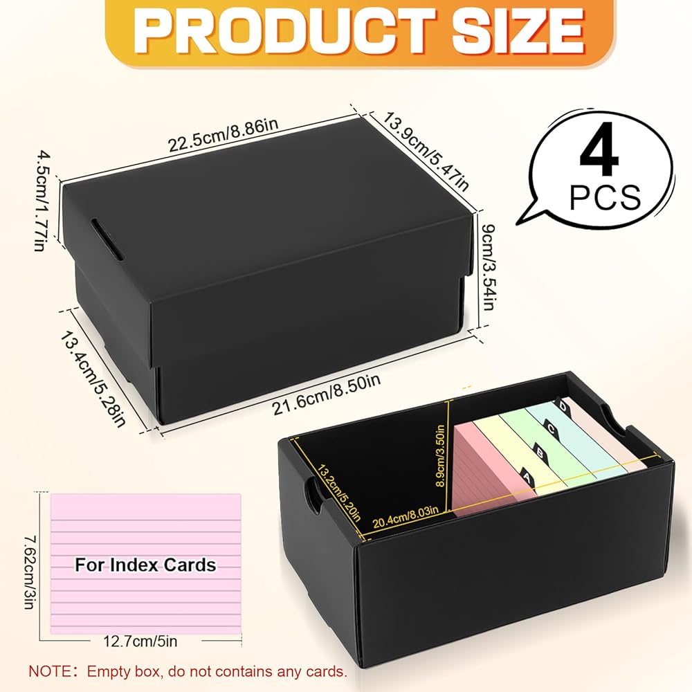 4Pack 3x5 Index Card Holder, Index Card Box Hold 4000 Cards, Flash Card Holder Index Cards Case 3x5 Note Card Organizer File Box Black Index Card Storage Box for 3''x5'' Notecard Flashcard Recipe Card