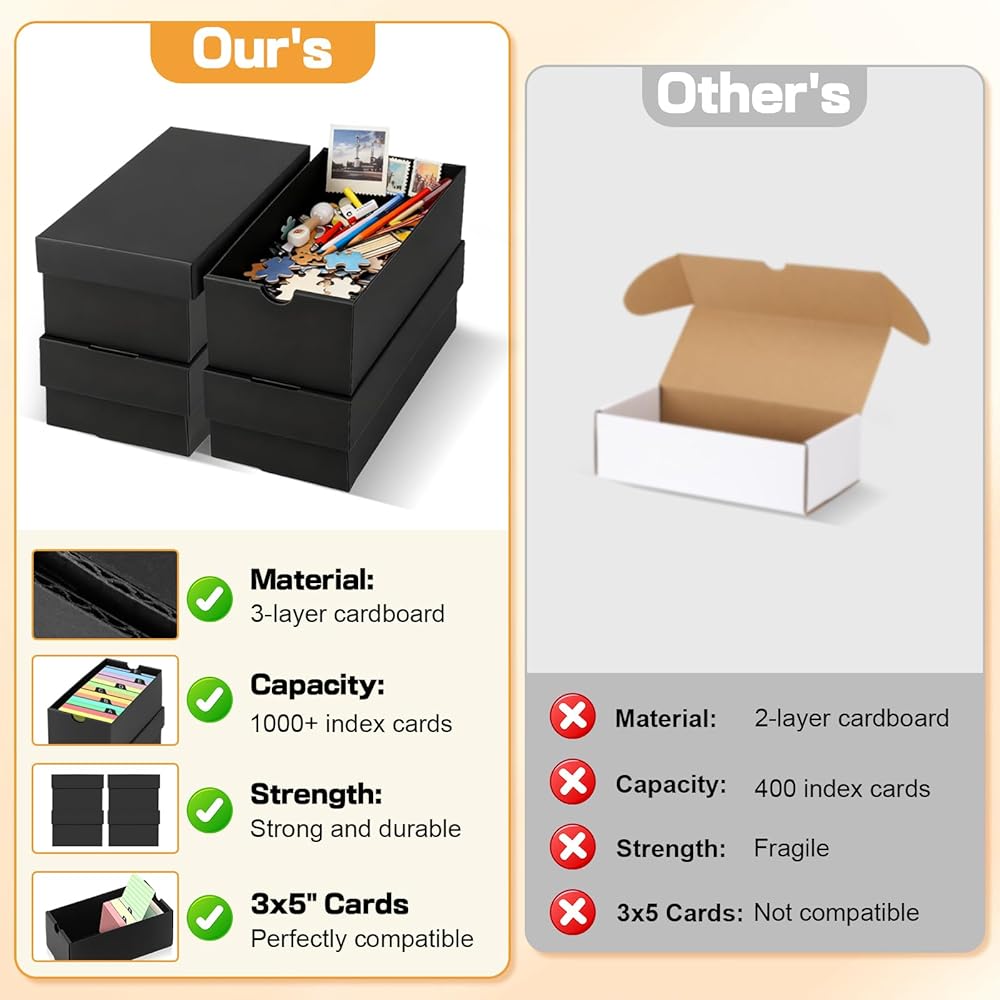 【LARGE-CAPACITY INDEX CARD HOLDER】You'll receive 4 sets of index card box, each holding over 1,000 standard 3x5-inch index cards. These large capacity index card cases neatly organize your note cards, recipe cards, flashcards, and other types of cards in one place, making it easy to find the card you need in seconds and avoid clutter. NOTE: Index cards not included.