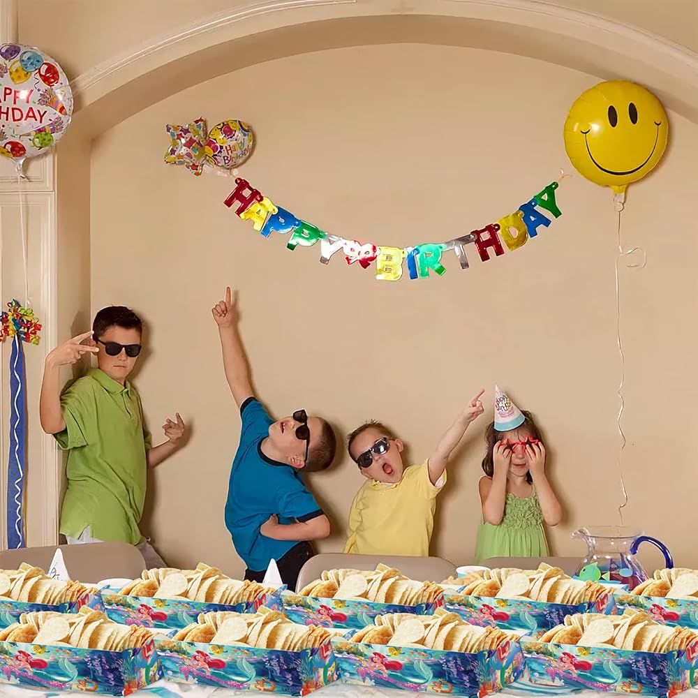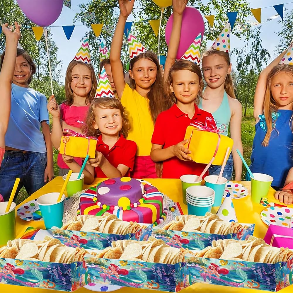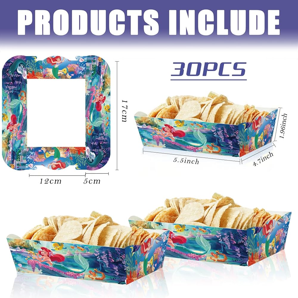30 قطعة من صواني الوجبات الخفيفة الورقية من حورية البحر الصغيرة آرييل، لوازم الحفلات، صواني طعام حورية البحر الصغيرة للأولاد، حامل ورق مقوى للفشار لتزيين حفلات عيد الميلاد الصغيرة من آرييل