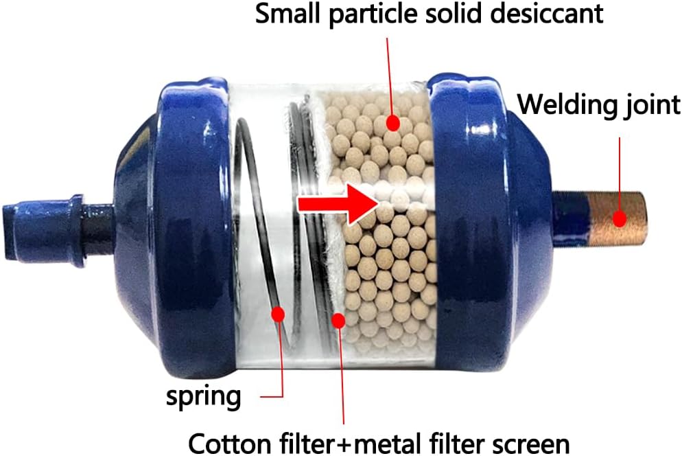 【Reliable Materials】EK-083S Liquid Line Filter Drier is durable and has strong water absorption capacity.The outer layer is coated with corrosion-resistant epoxy powder spray paint, and the inner layer is filled with molecular sieve filter particles.