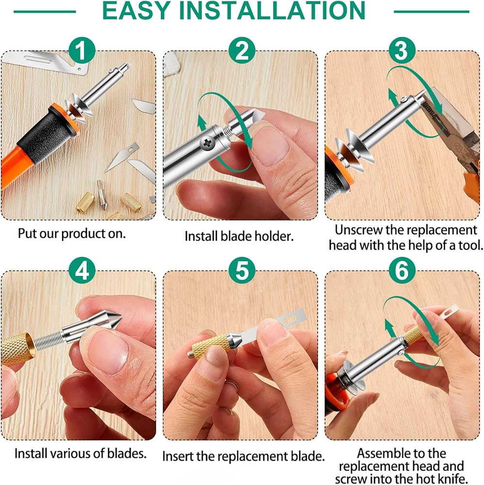 Durable material: our electric hot knife cutter tools are mainly made of metal material, and the handle of hot knife cutter is made of plastic, it is comfortable to hold, and the metal stand is made of metal material, these tools are durable, reliable and reusable; When using, please see the video for details on the blade installation steps; In addition, the blade will heat up during use, and a small amount of blackening will occur; This is normal; Please do not purchase if minded