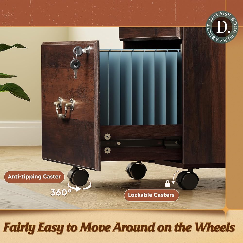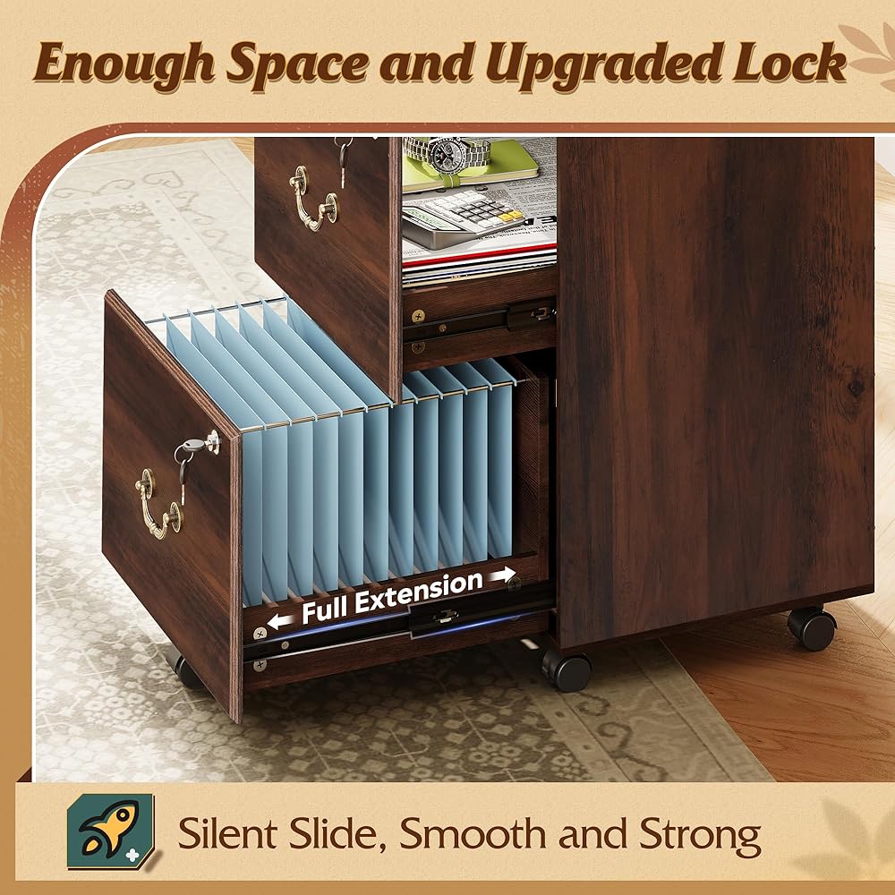 【Full Extension Drawers】: With high-quality full-extension slides, these filing cabinet drawers move fluidly with ease and open completely.Additionally, Our Rolling File Cabinet Features Upgraded Quality Locks and Keys, Perfect for Storing Confidential Materials.