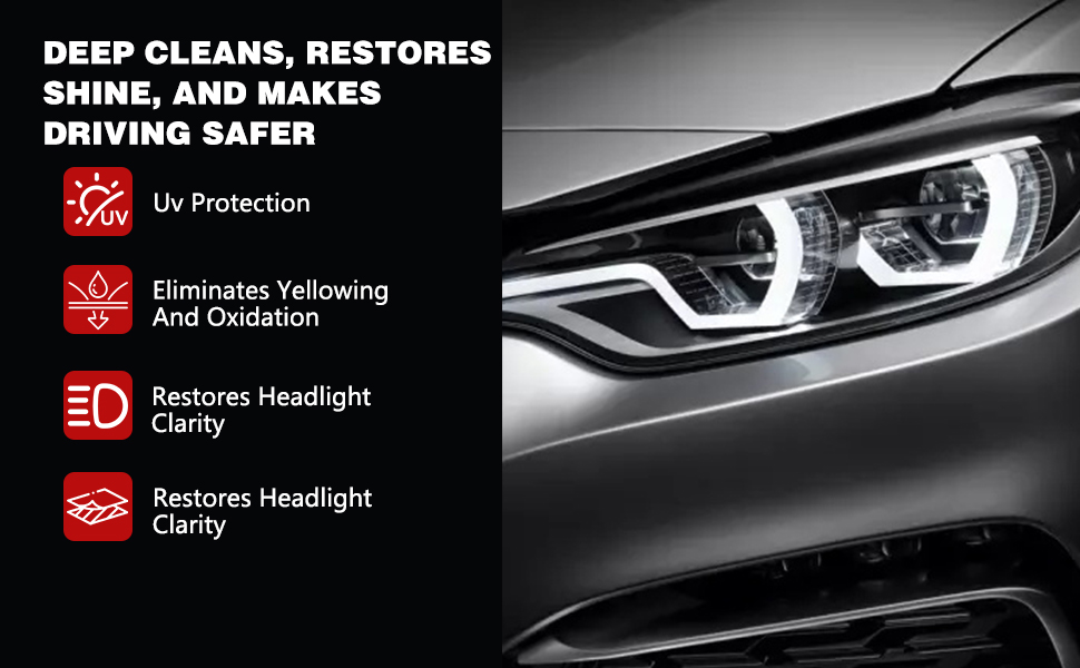 Easily achieve professional-grade results——No expensive headlight replacements required. This headlight cleaning and care kit can repair headlight lenses. This makes driving more comfortable and nighttime driving safer.