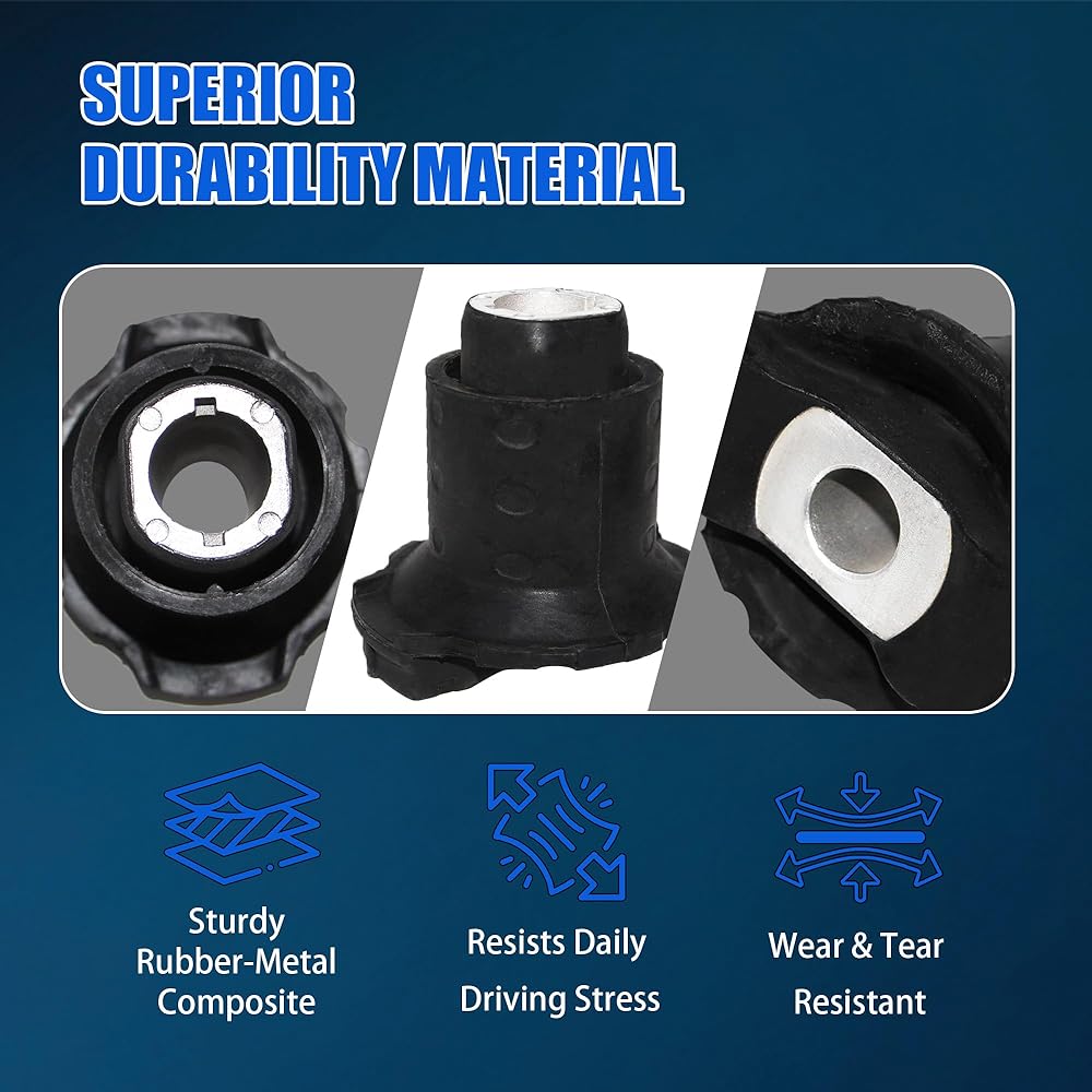 ✨【Durable Rubber-Steel Construction for Longevity】Crafted from a high-quality rubber-steel composite, this suspension cradle bushing balances flexibility and strength to withstand daily driving stress, vibration, and wear. The robust construction outperforms generic alternatives, maintaining structural integrity over time and delivering reliable performance that aligns with your vehicle's original standards.