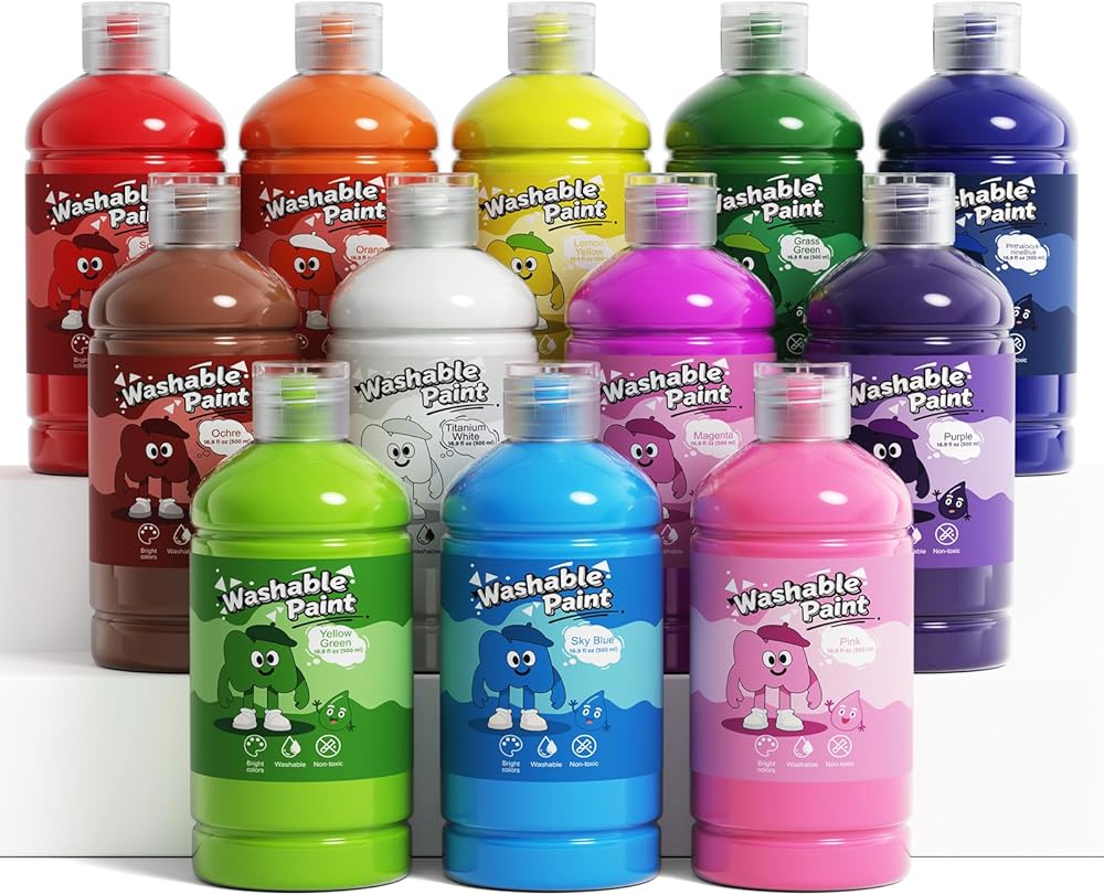 10 LARGE 2 FL OZ (60 ML) BOTTLES: Set includes 10 big squeeze bottles with 2 fl oz (60 ml) each—20 fl oz of washable finger paint in total, giving kids plenty of paint for repeated projects at home, preschool, or parties.