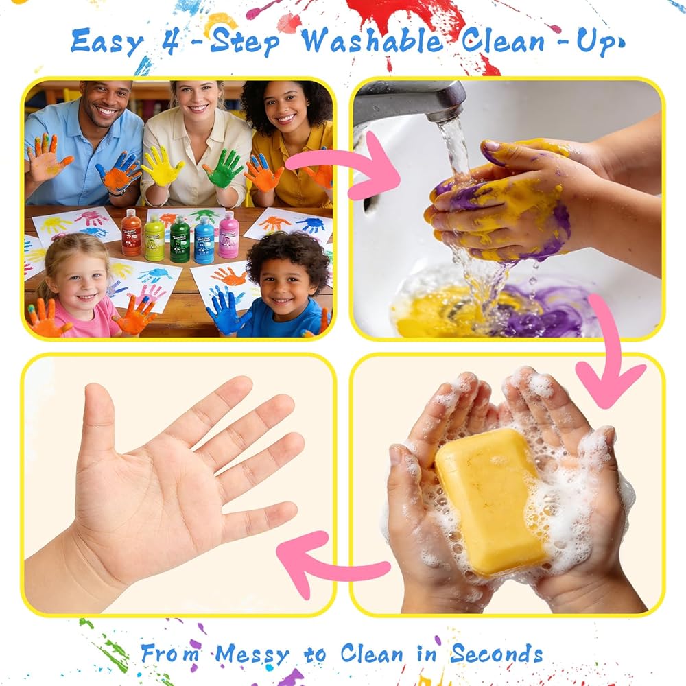 KID-SAFE, NON-TOXIC & WASHABLE: Water-based, non-toxic formula washes off skin and most washable fabrics with soap and water, letting children explore color freely without long-lasting stains.