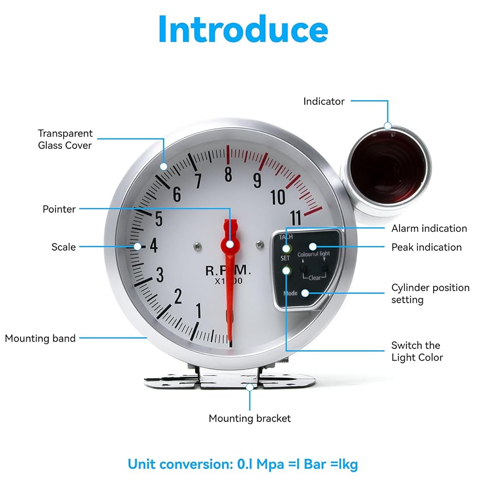 1. High-Precision Digital Tachometer for Cars Ultra-accurate RPM readings with 0.1% tolerance, powered by stepper motor technology for instant response—perfect for performance tuning, racing, or daily driving.ranging from 0 to 11000 RPM.
