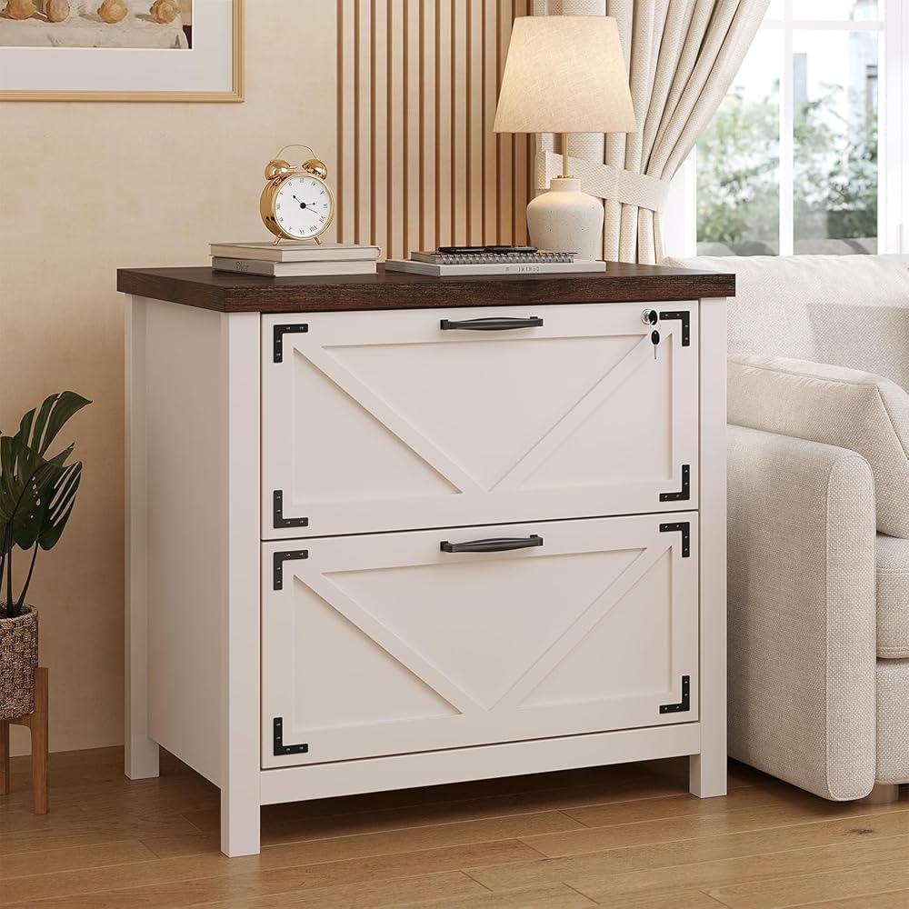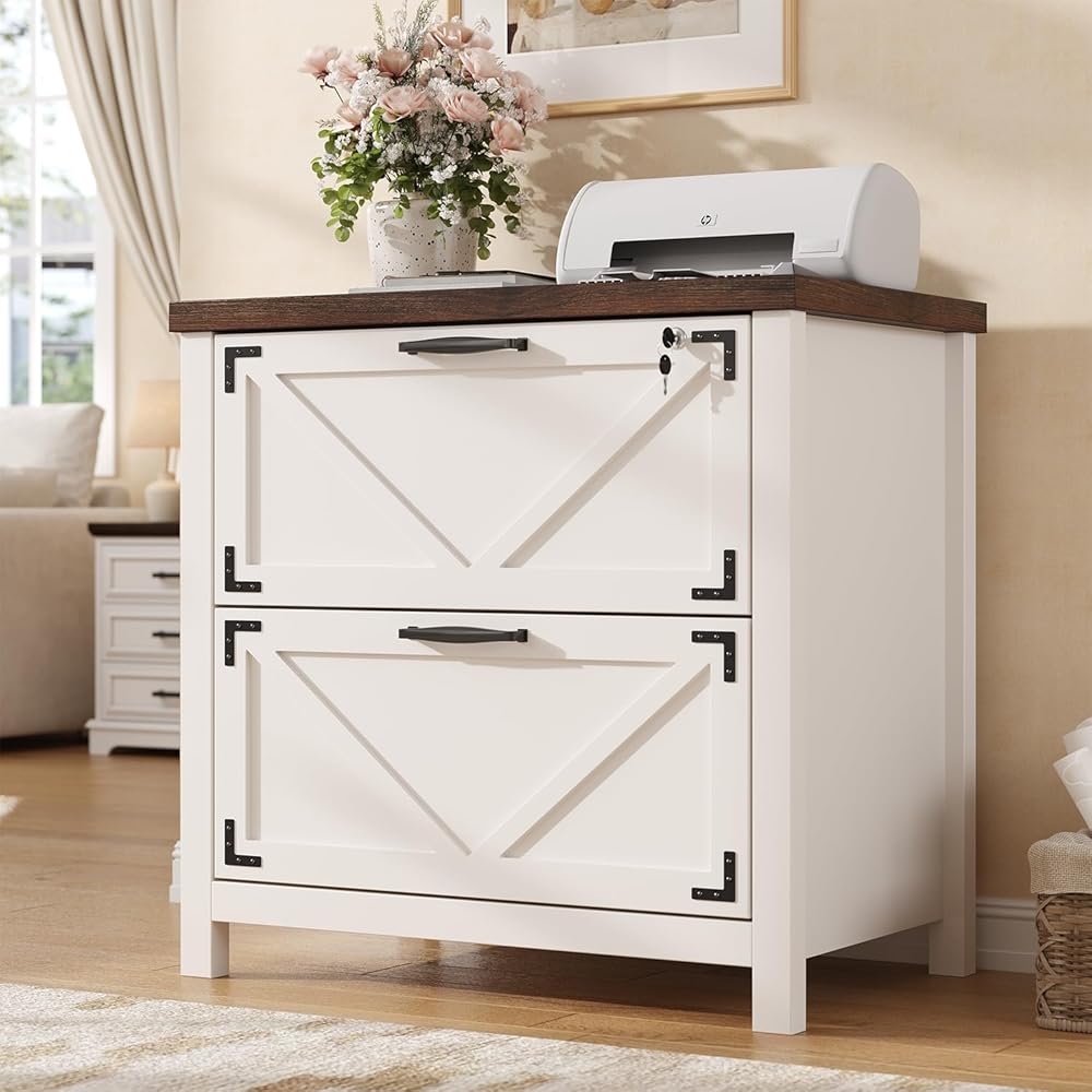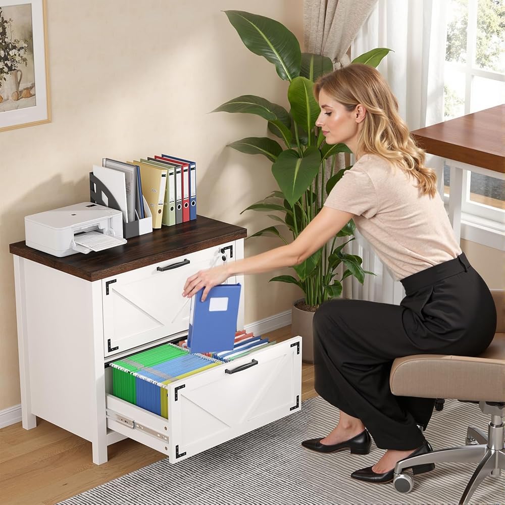 2. Modern Farmhouse Aesthetic Crafted from premium wood with natural grain, these home office wood file cabinets come in Classic White and Vintage Brown. Featuring clean lines and warm textures, they embody the modern farmhouse office furniture style and blend into any home.