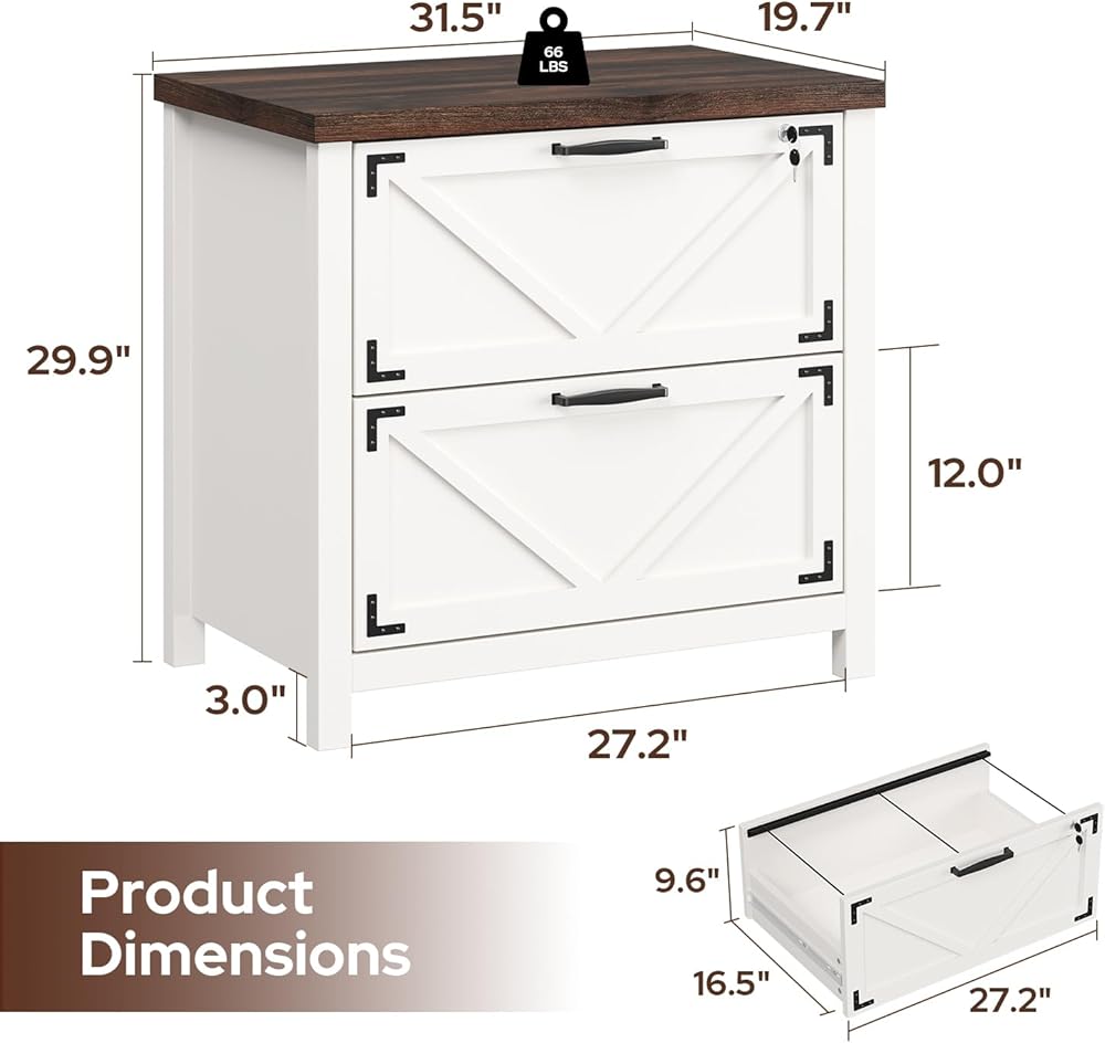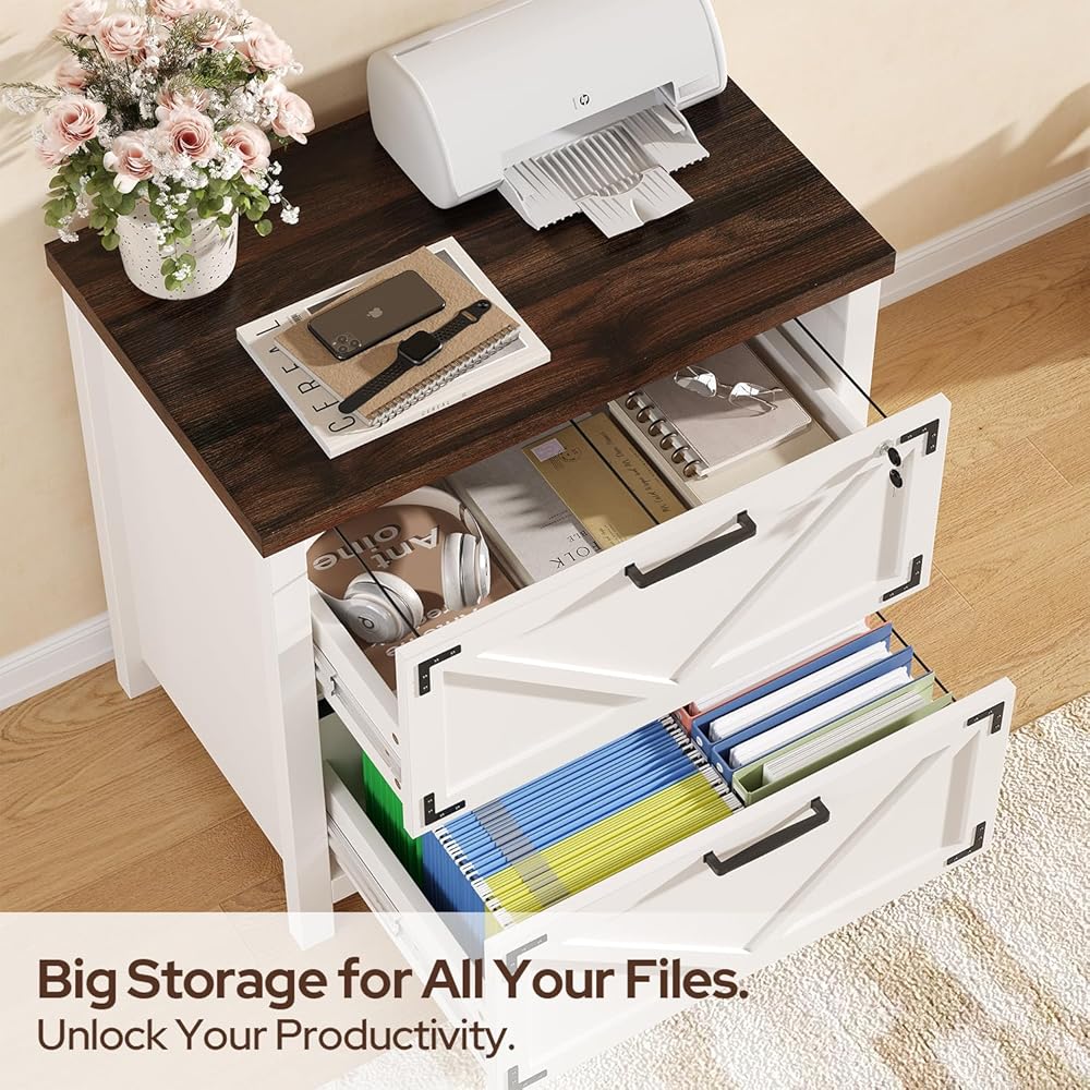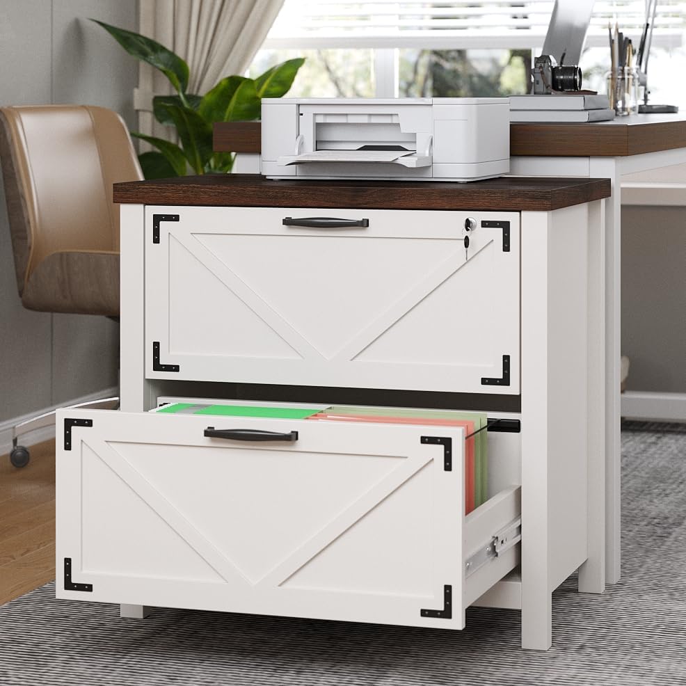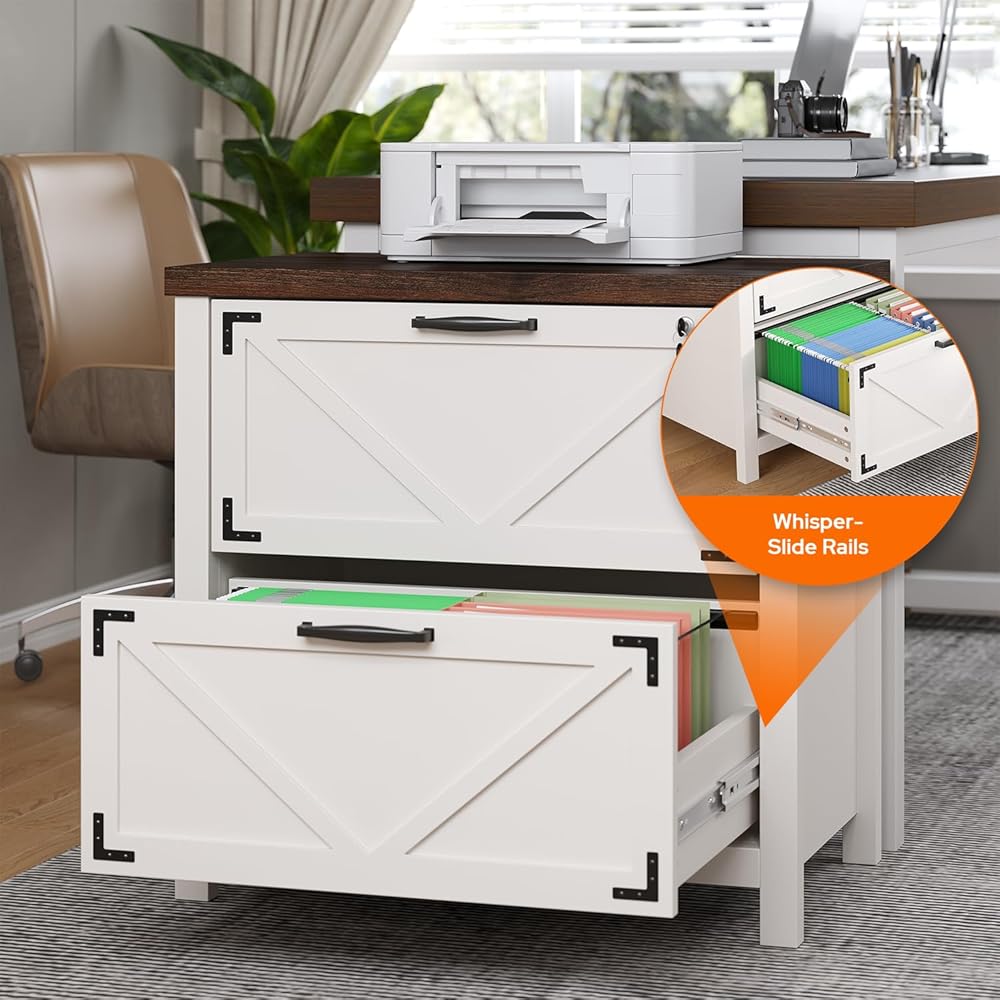 2. Modern Farmhouse Aesthetic Crafted from premium wood with natural grain, these home office wood file cabinets come in Classic White and Vintage Brown. Featuring clean lines and warm textures, they embody the modern farmhouse office furniture style and blend into any home.